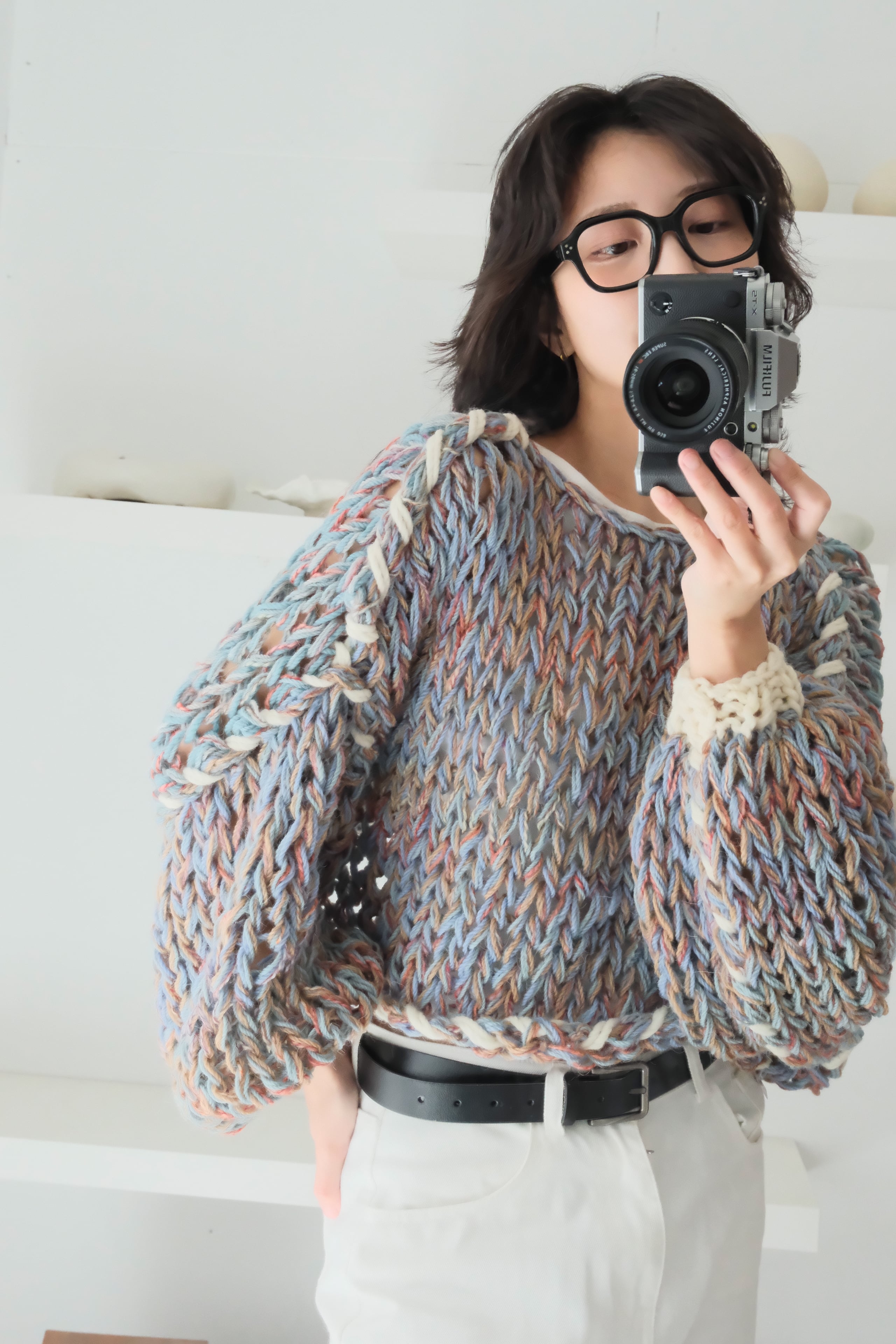 – Since we repurpose second hand yarn, we are not able to provide exact information about the materials. Please note that because of this, some dry cleaning stores may reject taking in knitwear you have purchased from amuamu.