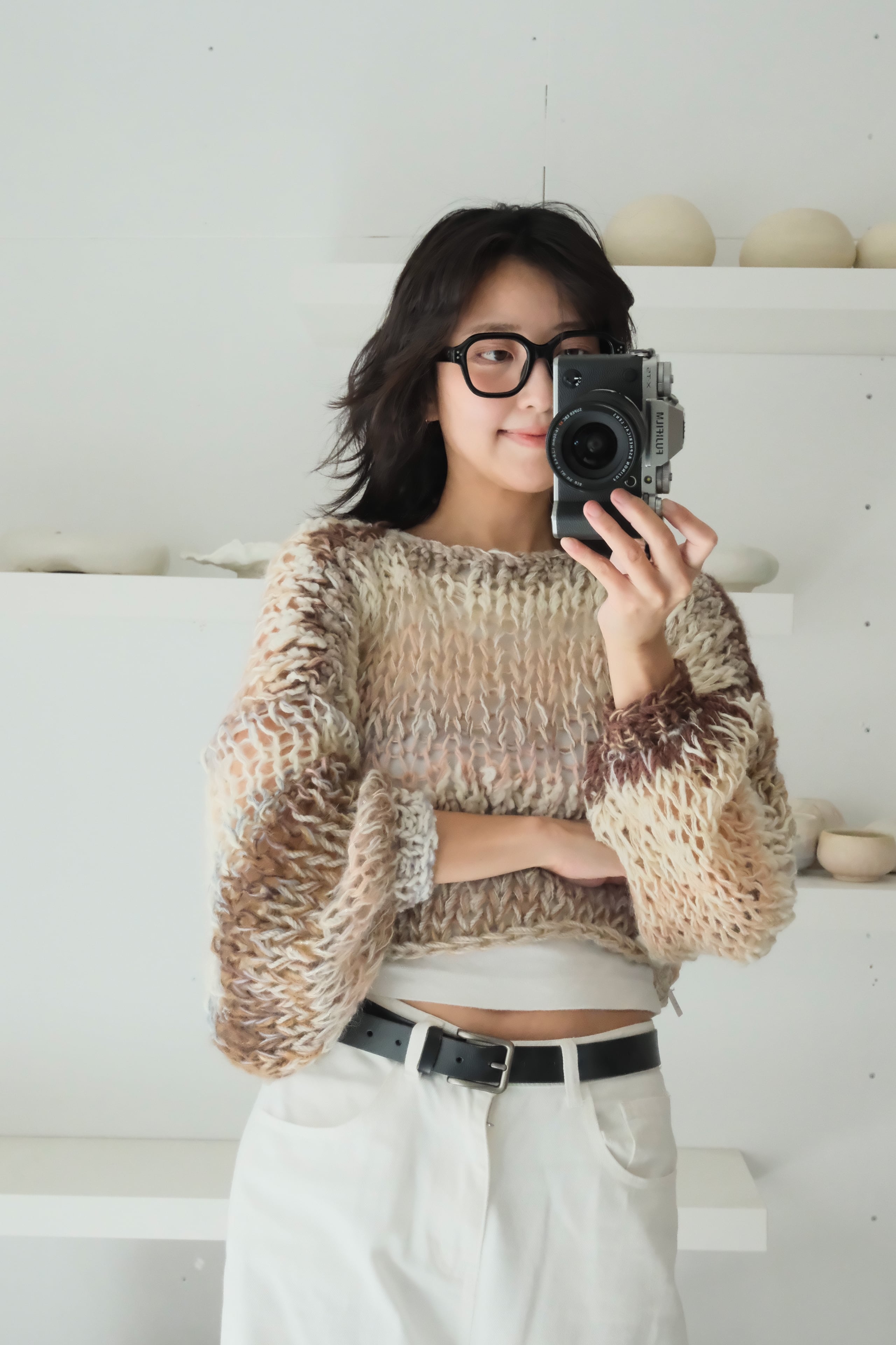 ラメやスラブなど数十種類の質感の毛糸をミックスしたシースループルオーバー