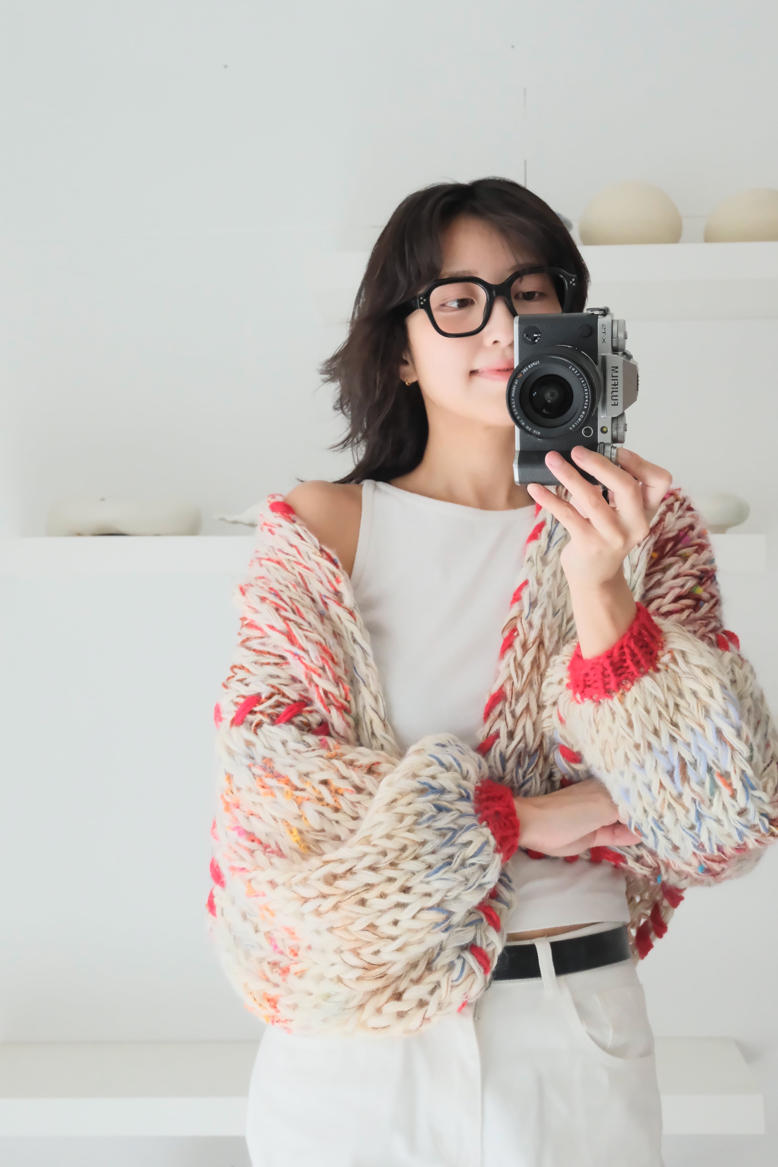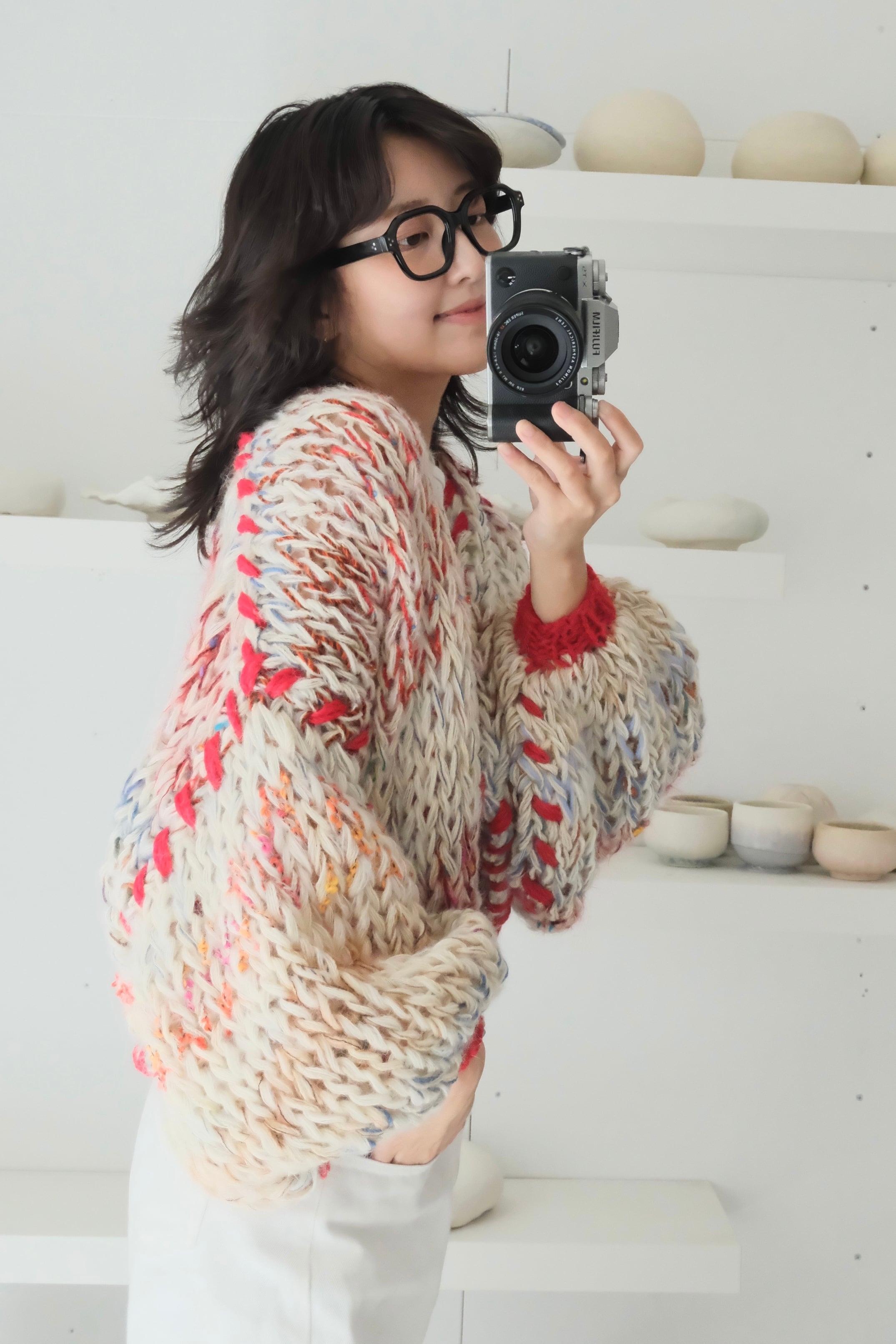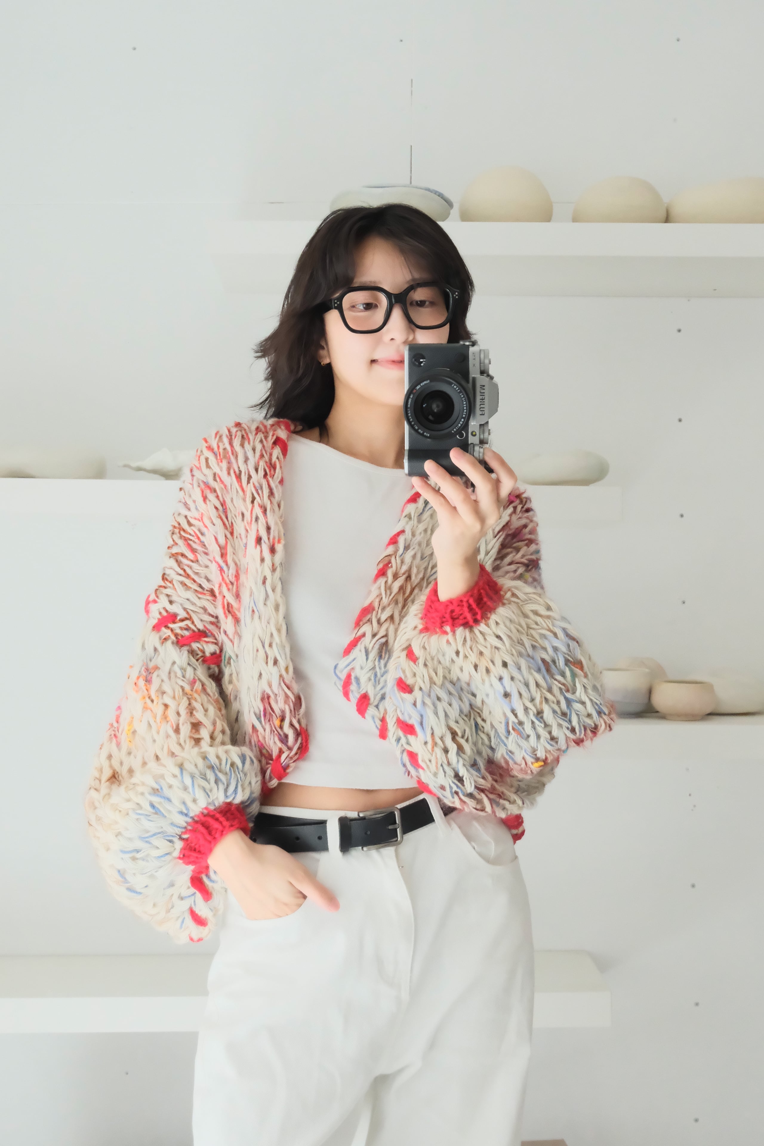 数十種類の毛糸をたっぷりとミックスしたカーディガン