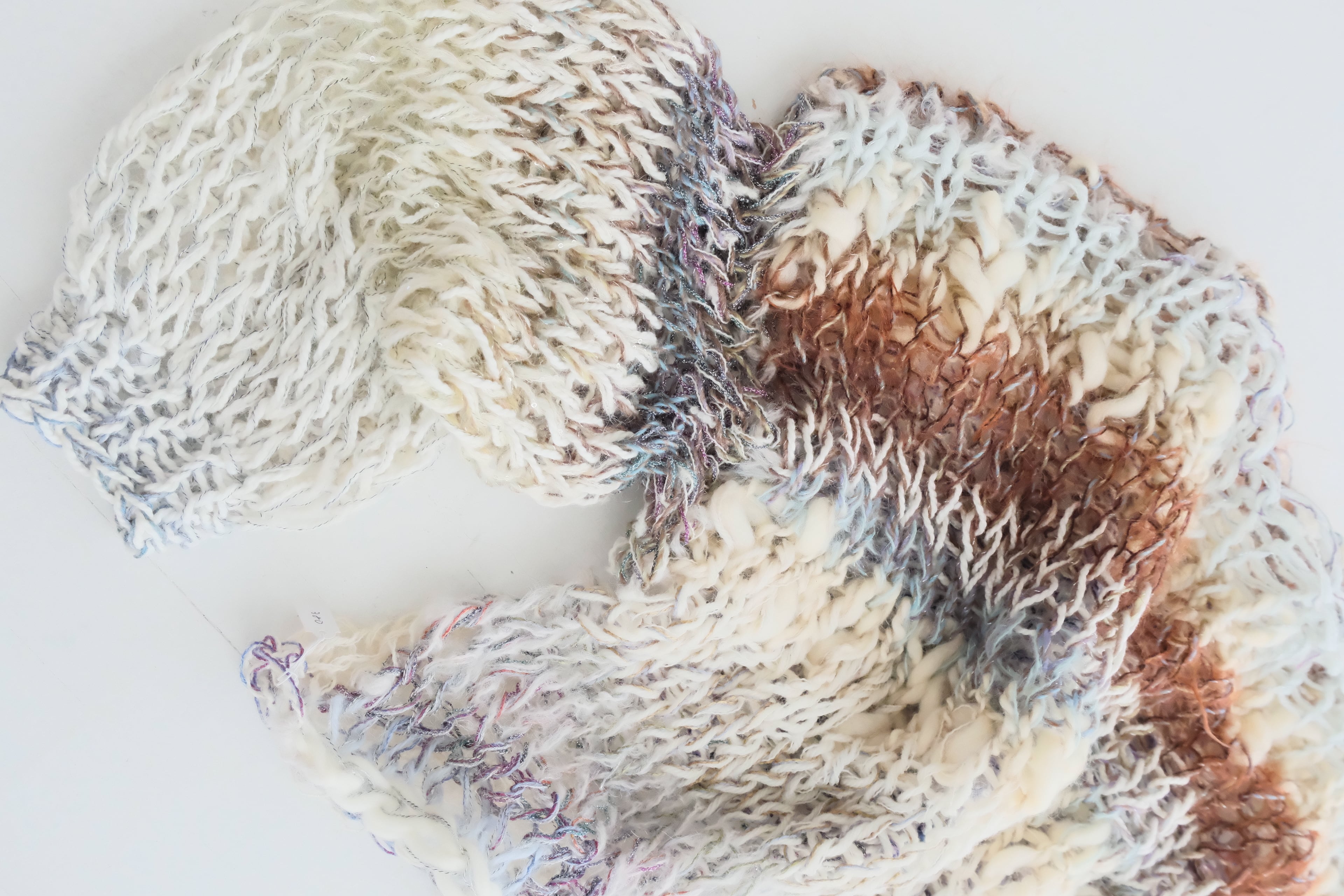 •セカンドハンドの毛糸を混ぜて使用しているため正確な品質表示が出せませんが、主に60~100%モヘア/ウール、その他アンゴラ、綿、シルク、アクリル、ポリエステルなどです。