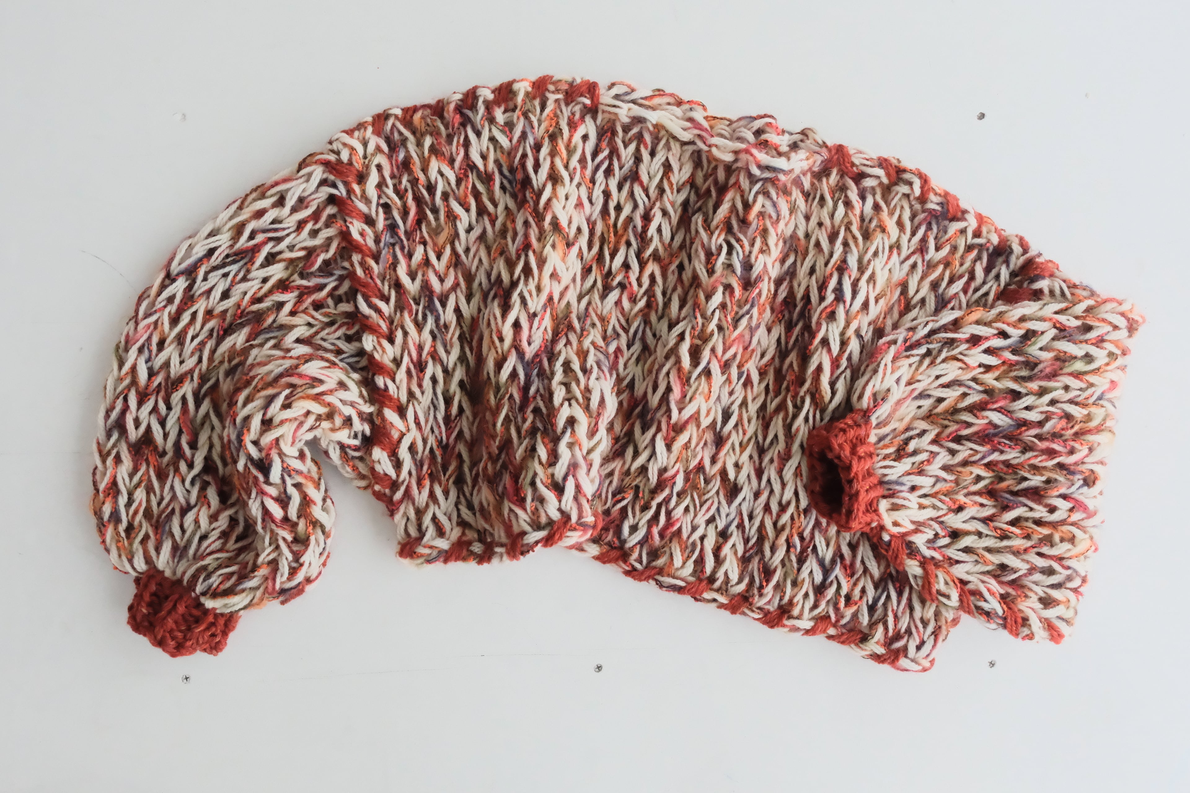 – Since we repurpose second hand yarn, we are not able to provide exact information about the materials. Please note that because of this, some dry cleaning stores may reject taking in knitwear you have purchased from amuamu.