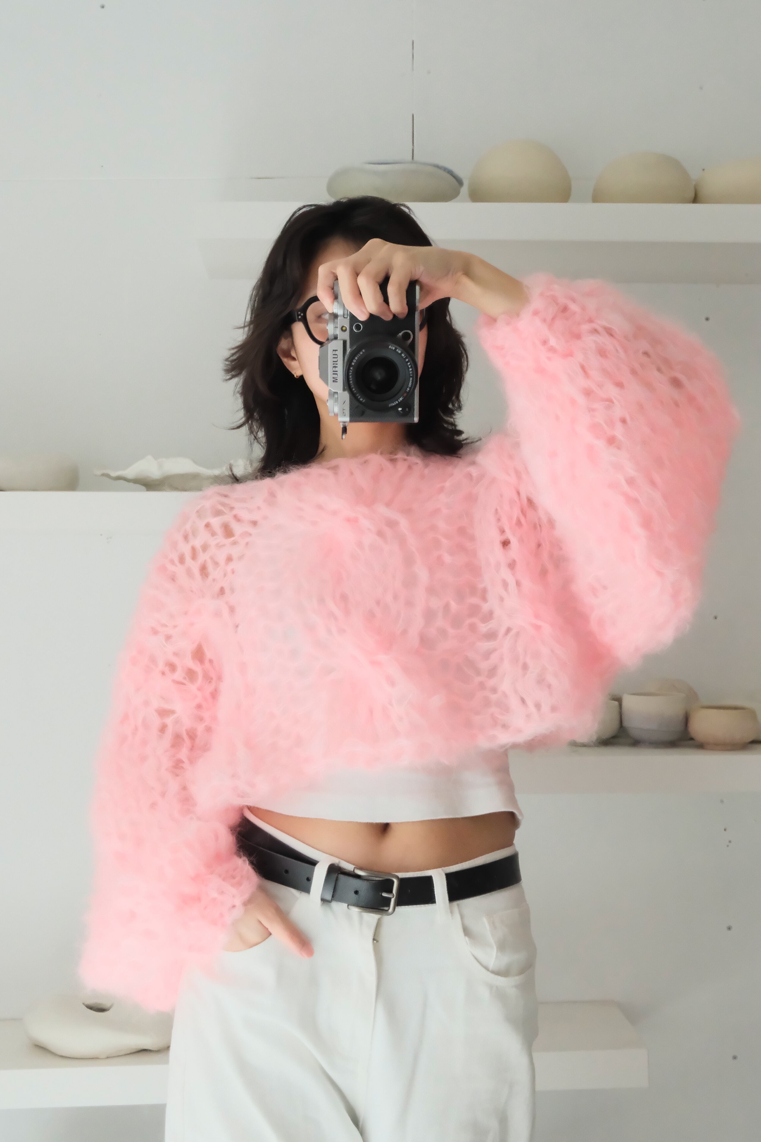 An airy, cosy layer of comfort that hugs your skin — every single piece is uniquely handknitted, using plenty of high quality second hand wool and mohair yarns.