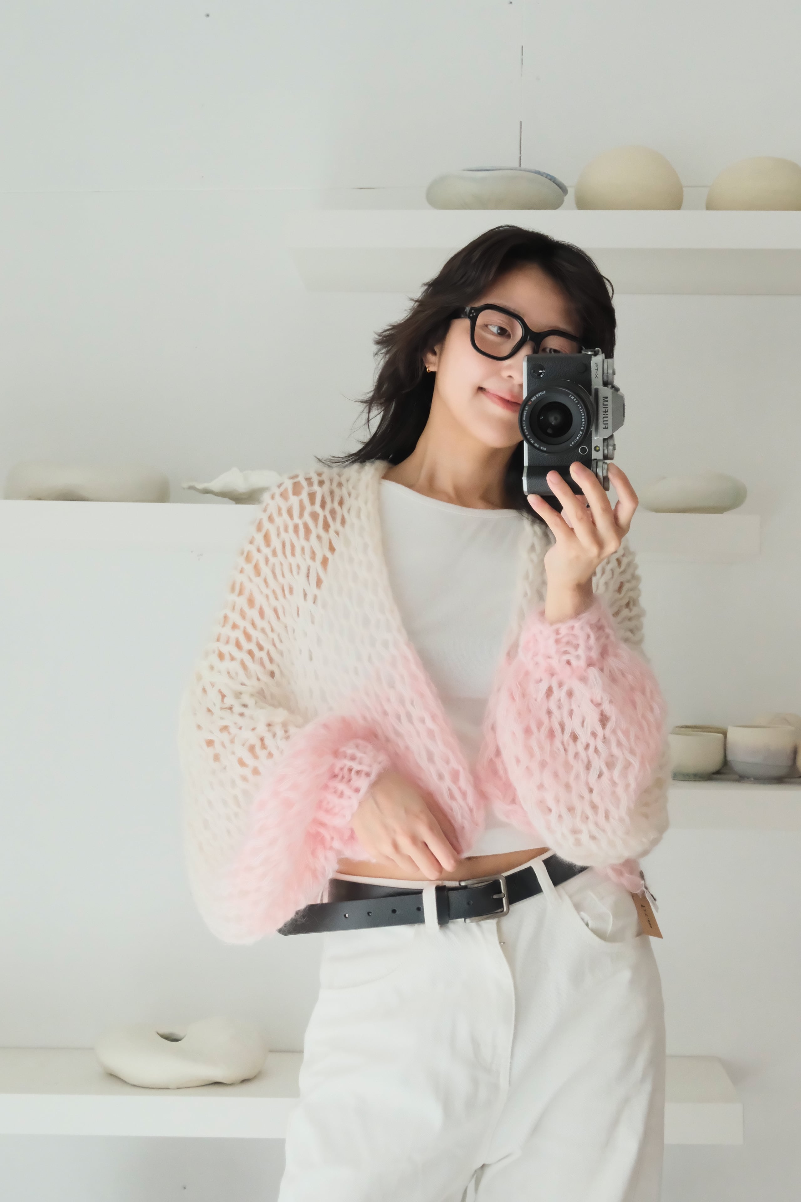 特にミックス毛糸でシースルーに仕上げている商品では、仕上げの際に糸端の処理をしていても着用中に糸端が表にでることがあります。質感の一部としてお楽しみ頂ける方のみご購入ください。