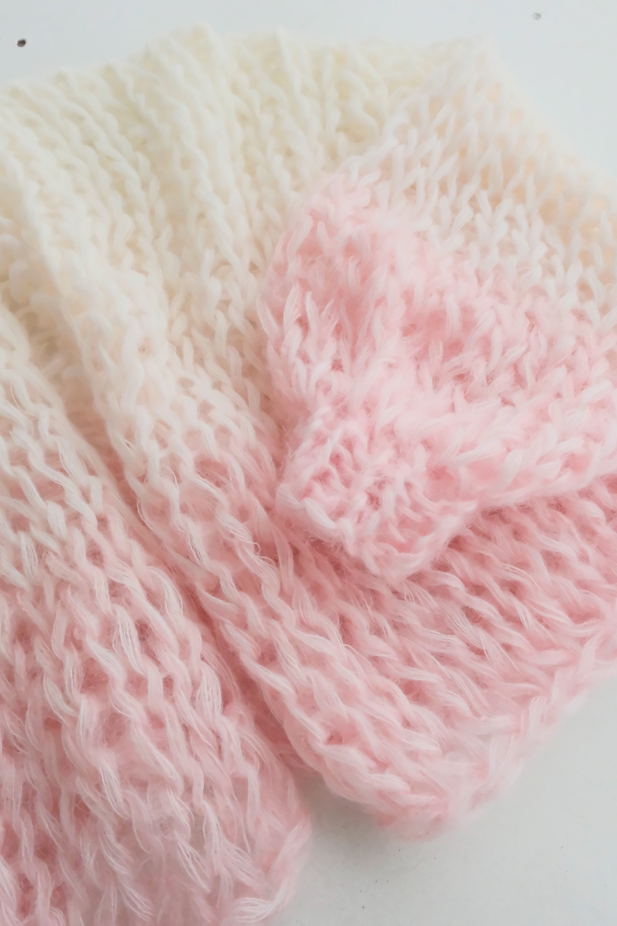 •セカンドハンドの毛糸を混ぜて使用しているため正確な品質表示が出せませんが、主に60~100%モヘア/ウール、その他アンゴラ、綿、シルク、アクリル、ポリエステルなどです。
