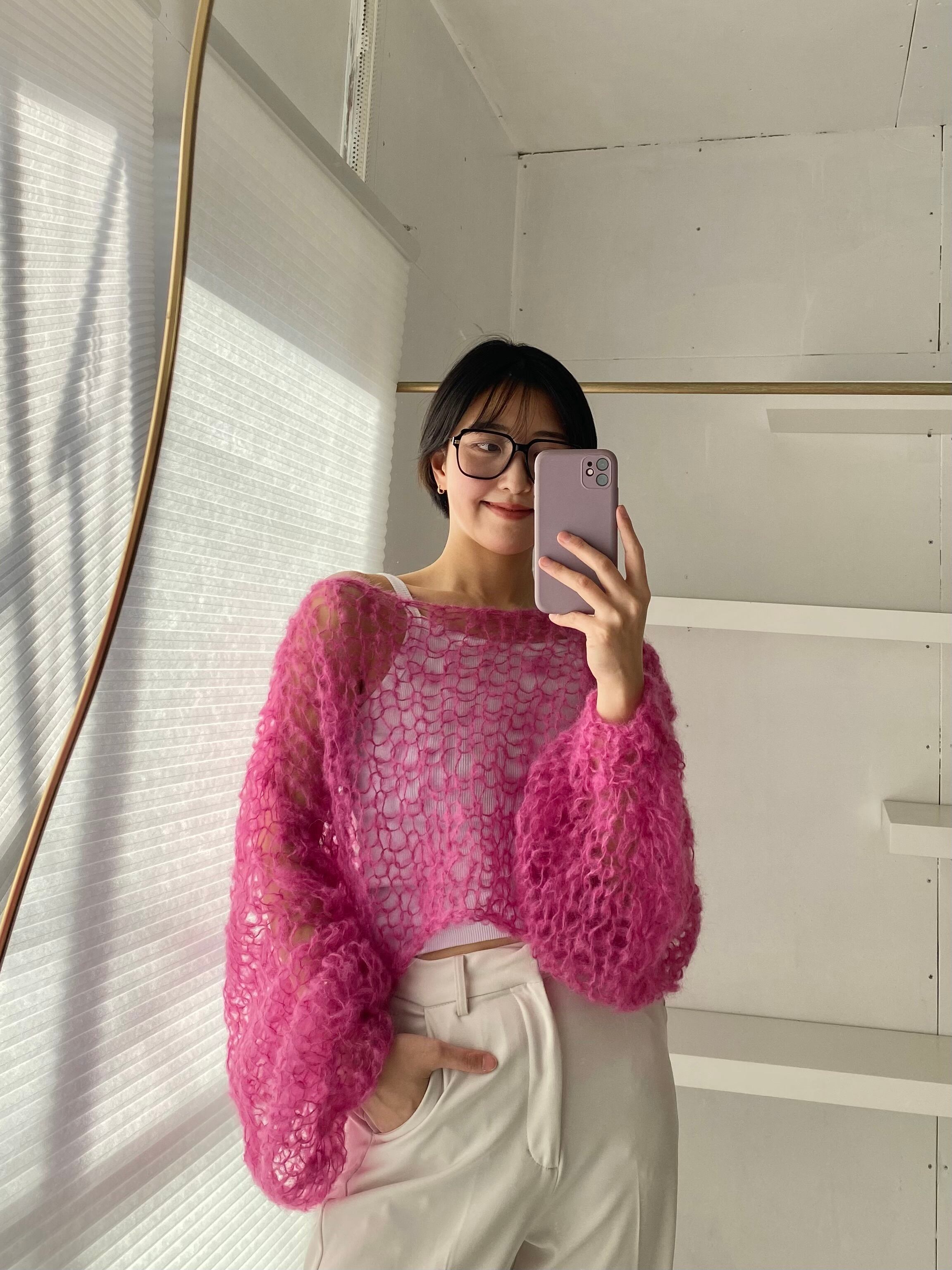 •セカンドハンドの毛糸を混ぜて使用しているため正確な品質表示が出せませんが、主に50~80%モヘア/ウール、その他アクリル、ポリエステルなどです。