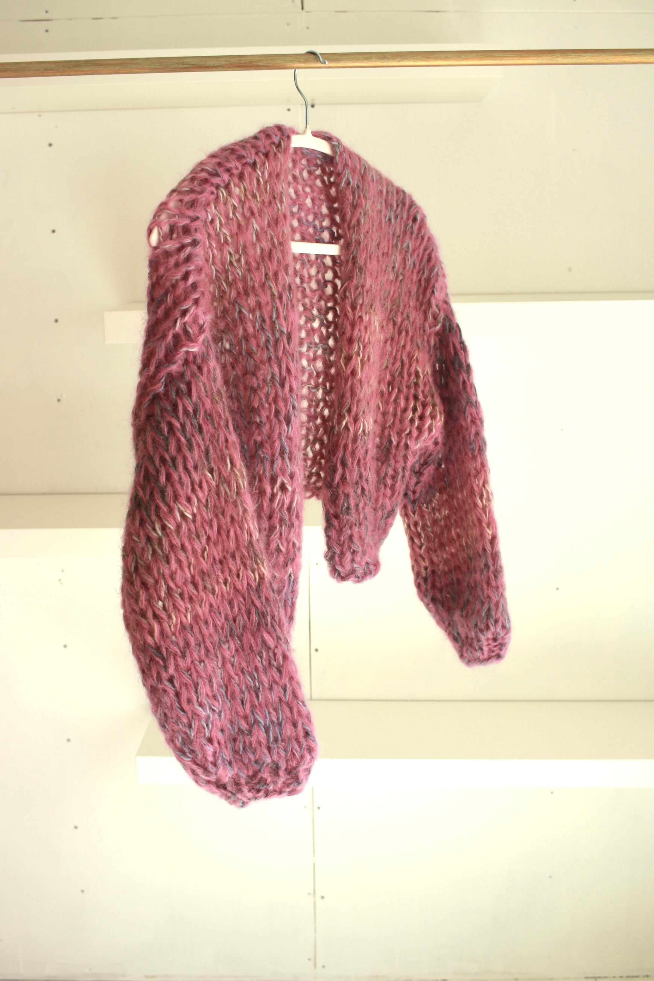 柔らかいモヘアにグラデーションの毛糸が編み込まれたカーディガン