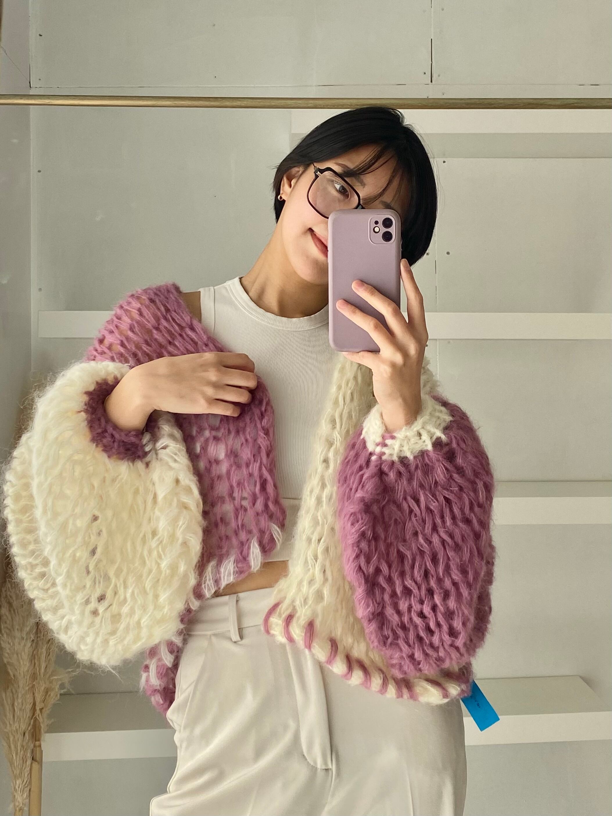 軽くて柔らかいモヘア毛糸で編まれたカーディガン