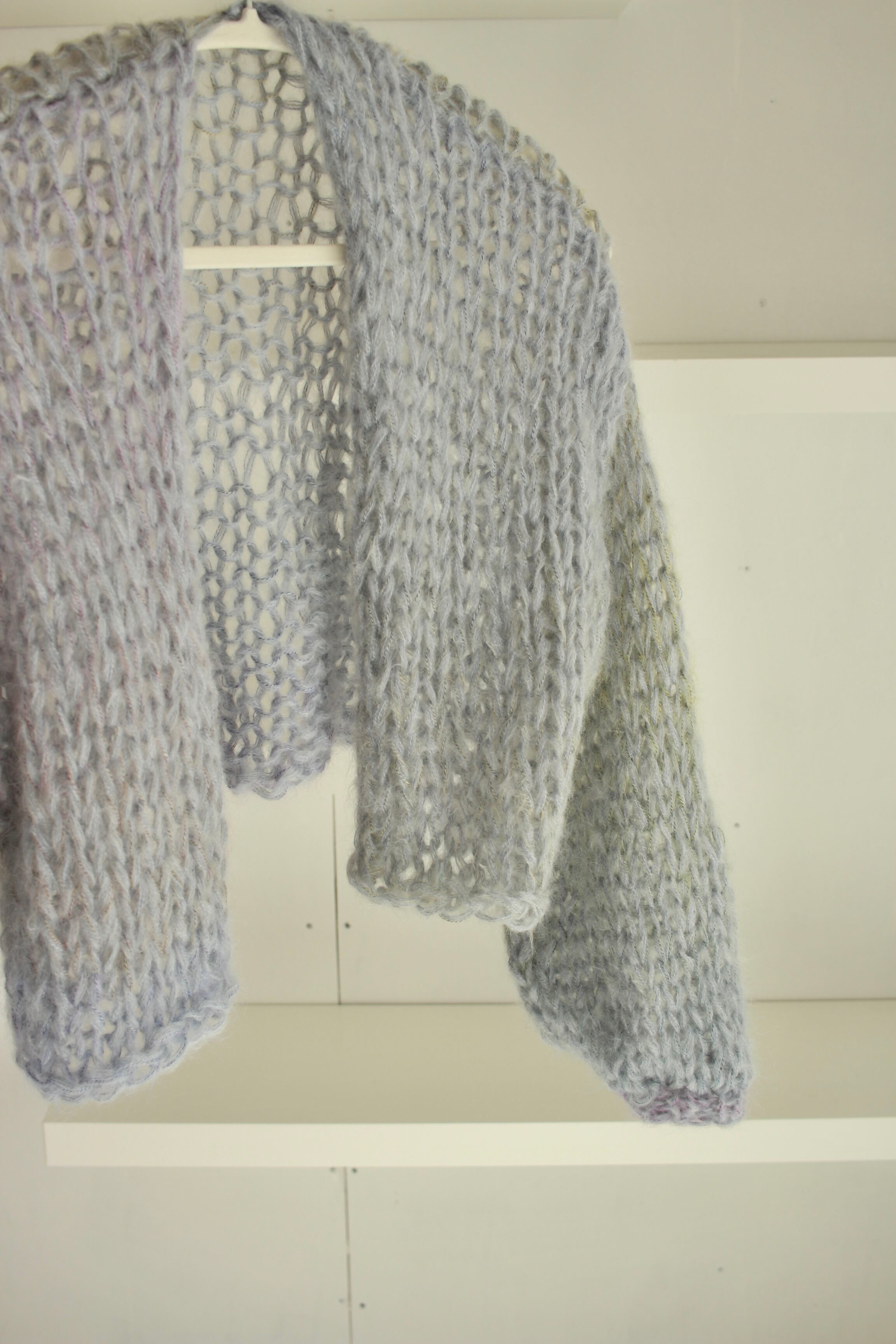 軽くて柔らかいモヘアにグラデーションが編み込まれた、水彩画のようなカーディガン