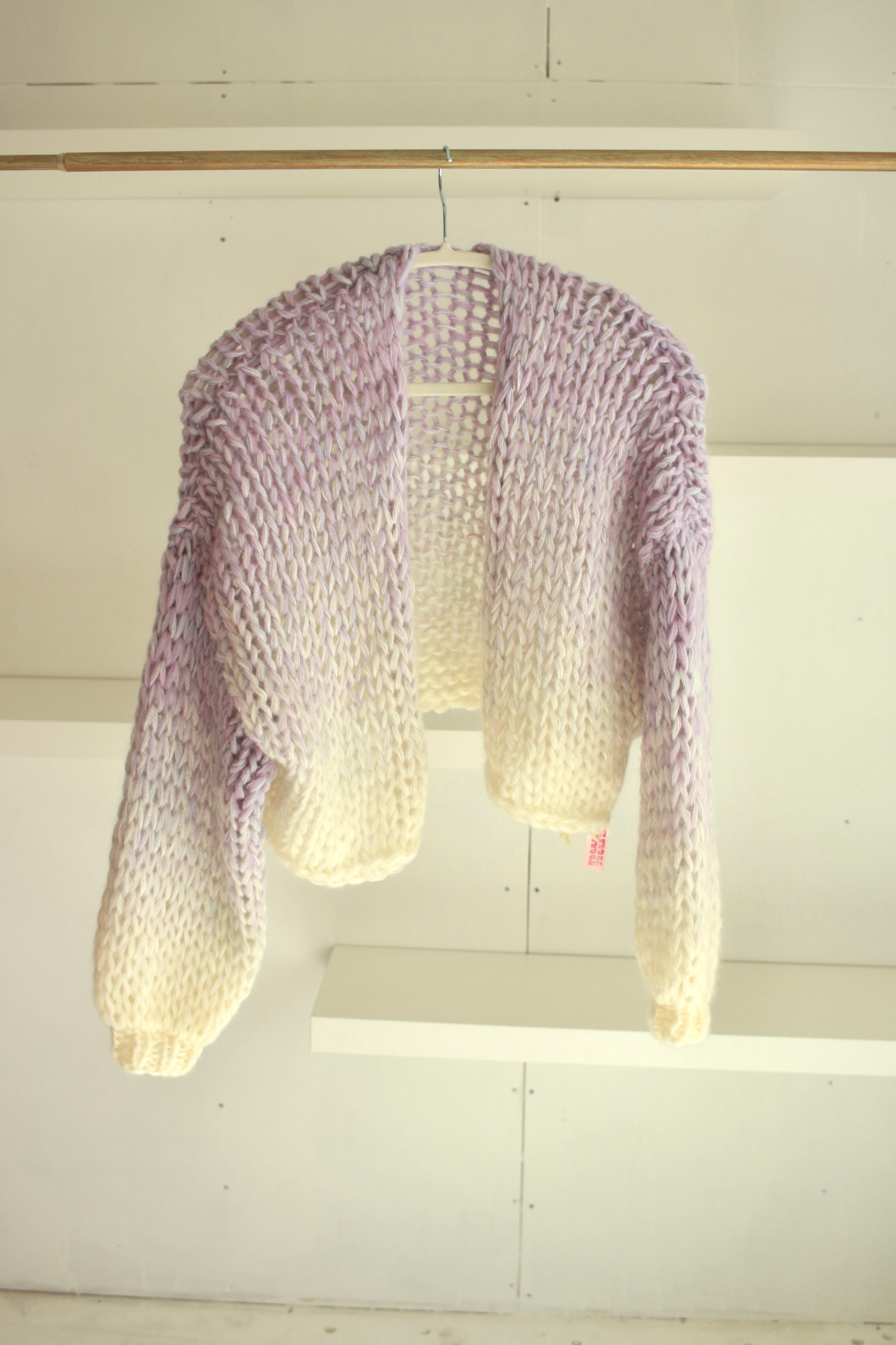 柔らかくて軽いモヘアにグラデーション毛糸を編み込んだ奥行きのあるグラデーションカーディガン