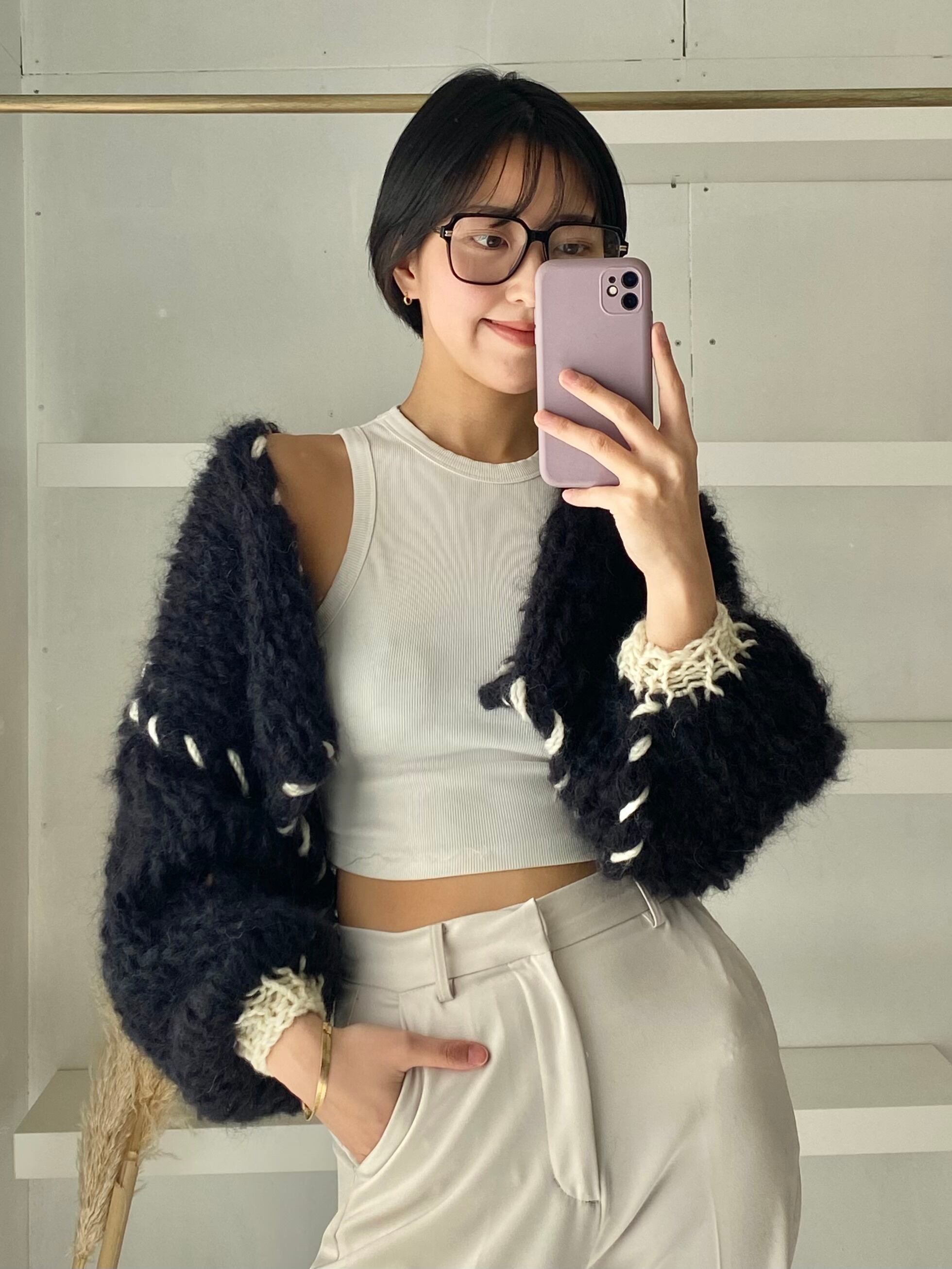 ふわふわの柔らかいモヘアを使用した短め丈のカーディガン