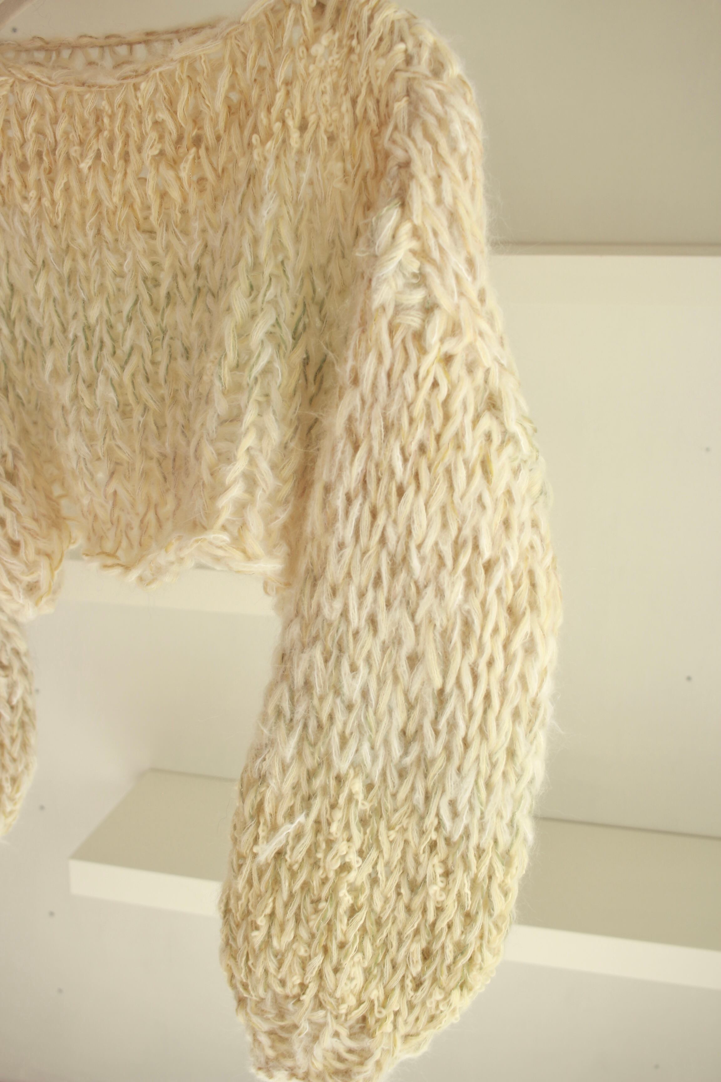 いろいろな質感の毛糸をミックスした、ショート丈のセーター
