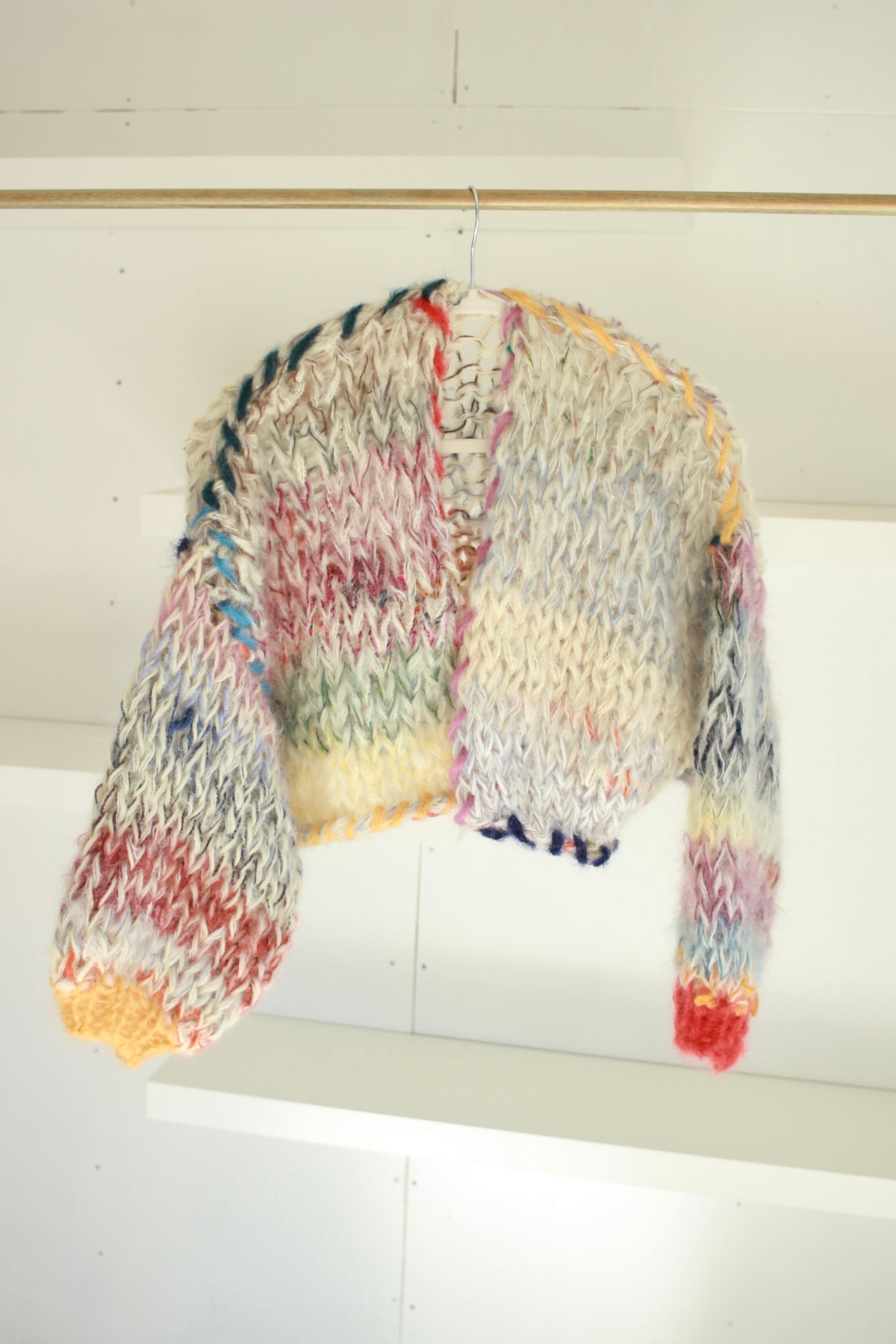 一期一会のセカンドハンド毛糸を使用した、全て一点物の手編みセーター。