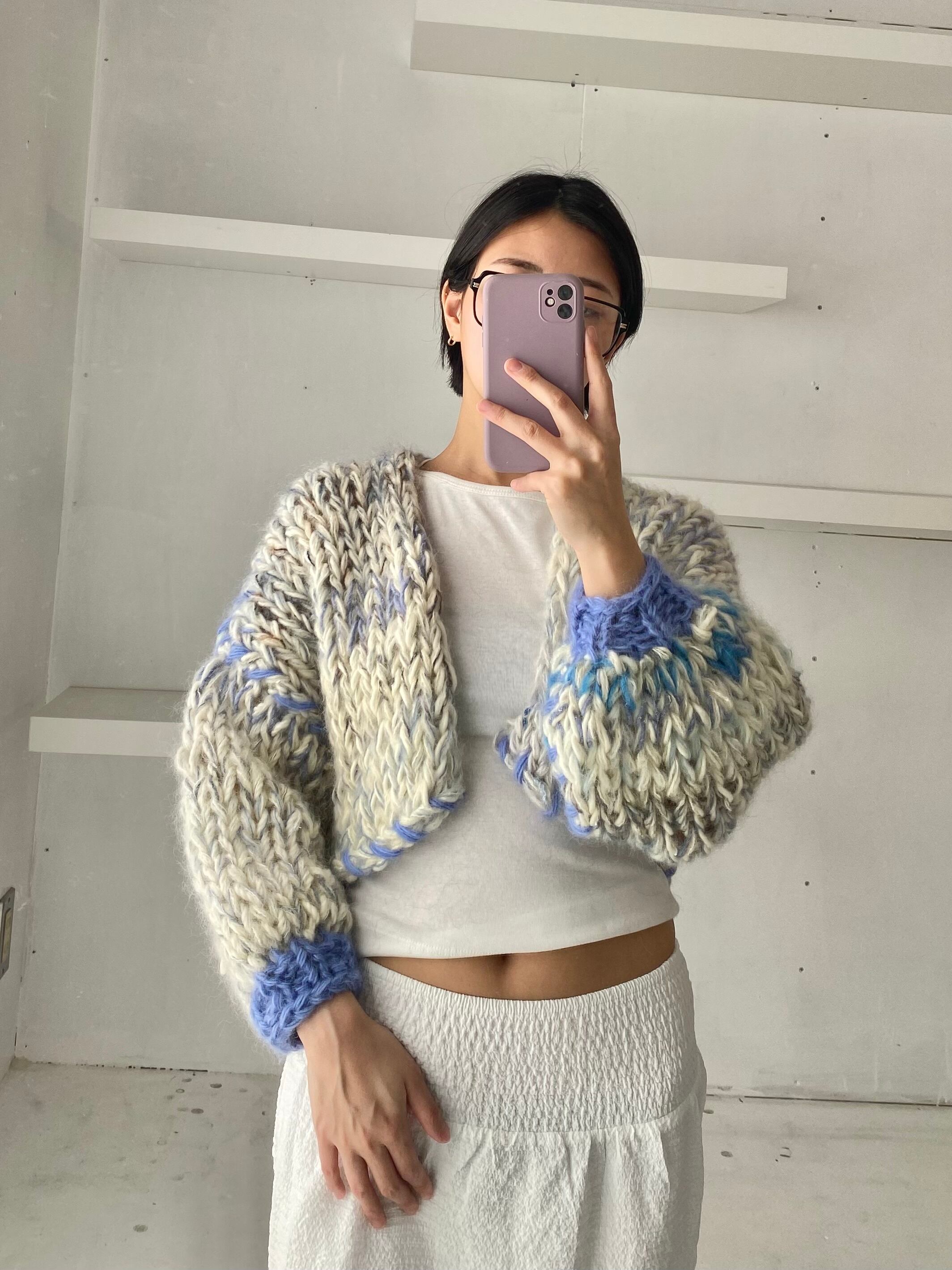 色々な毛糸をミックスしたカーディガン