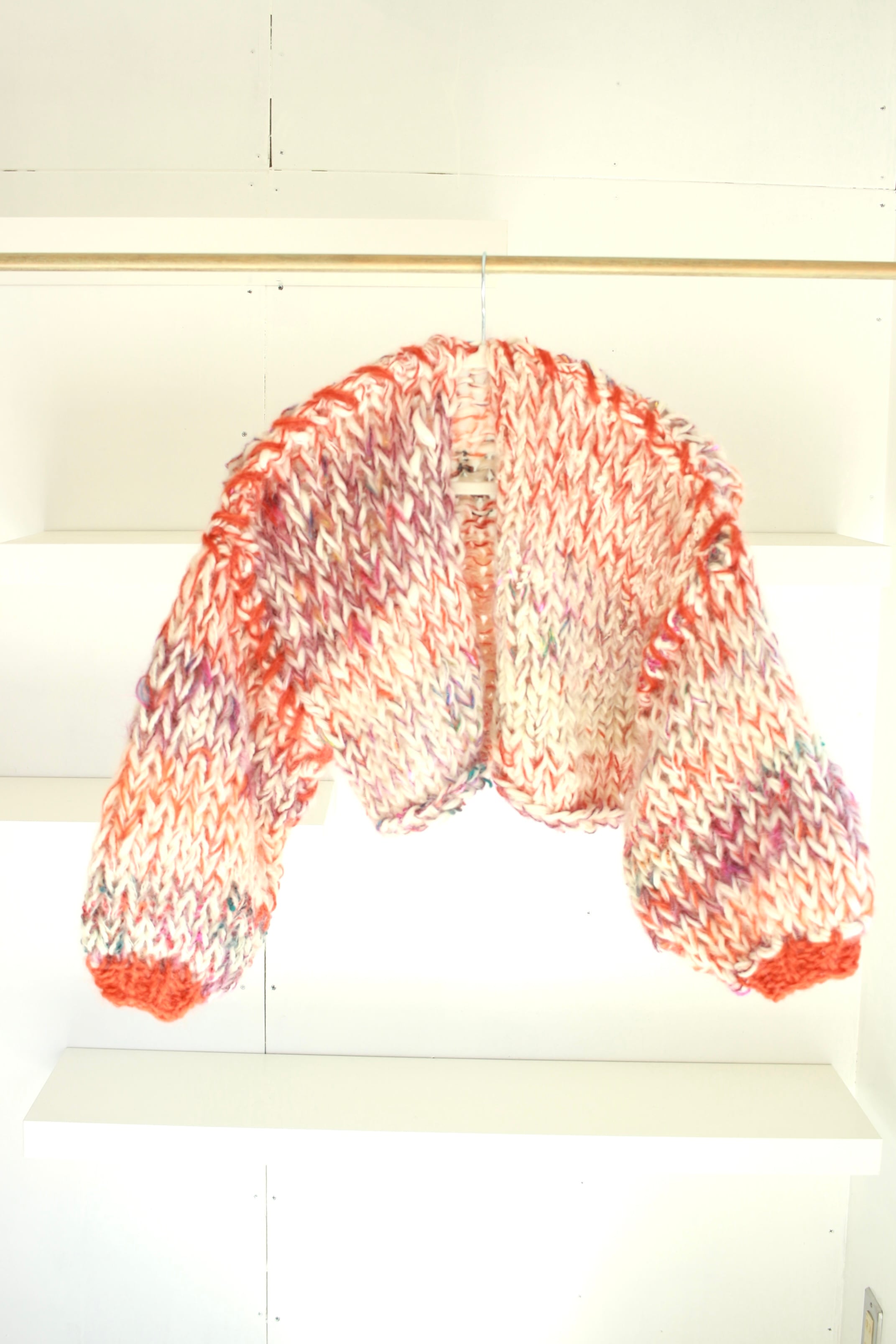 色々な質感の毛糸をミックスしたショート丈のカーディガン