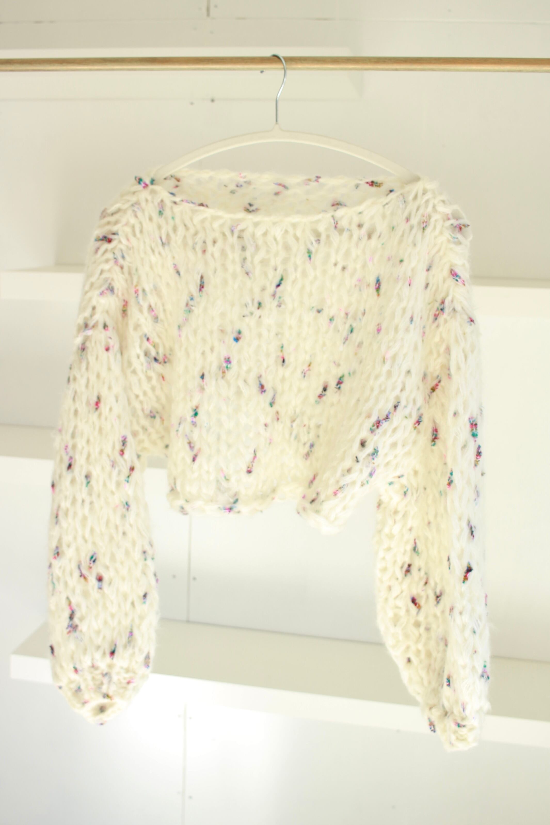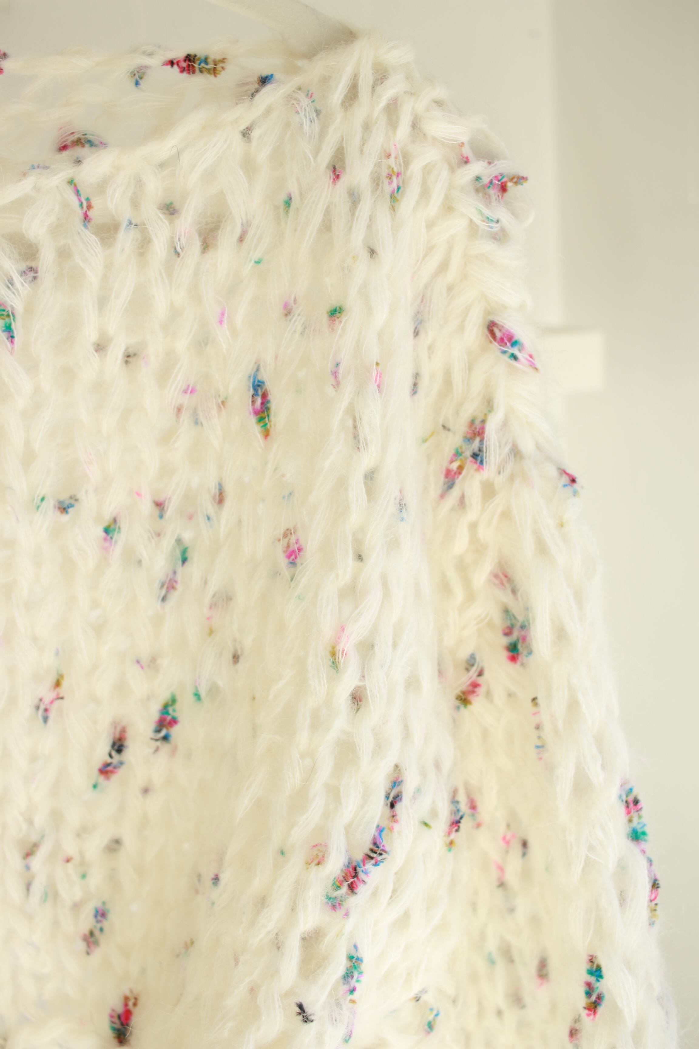 楽しいネップが編み込まれた、柔らかいモヘアのセーター