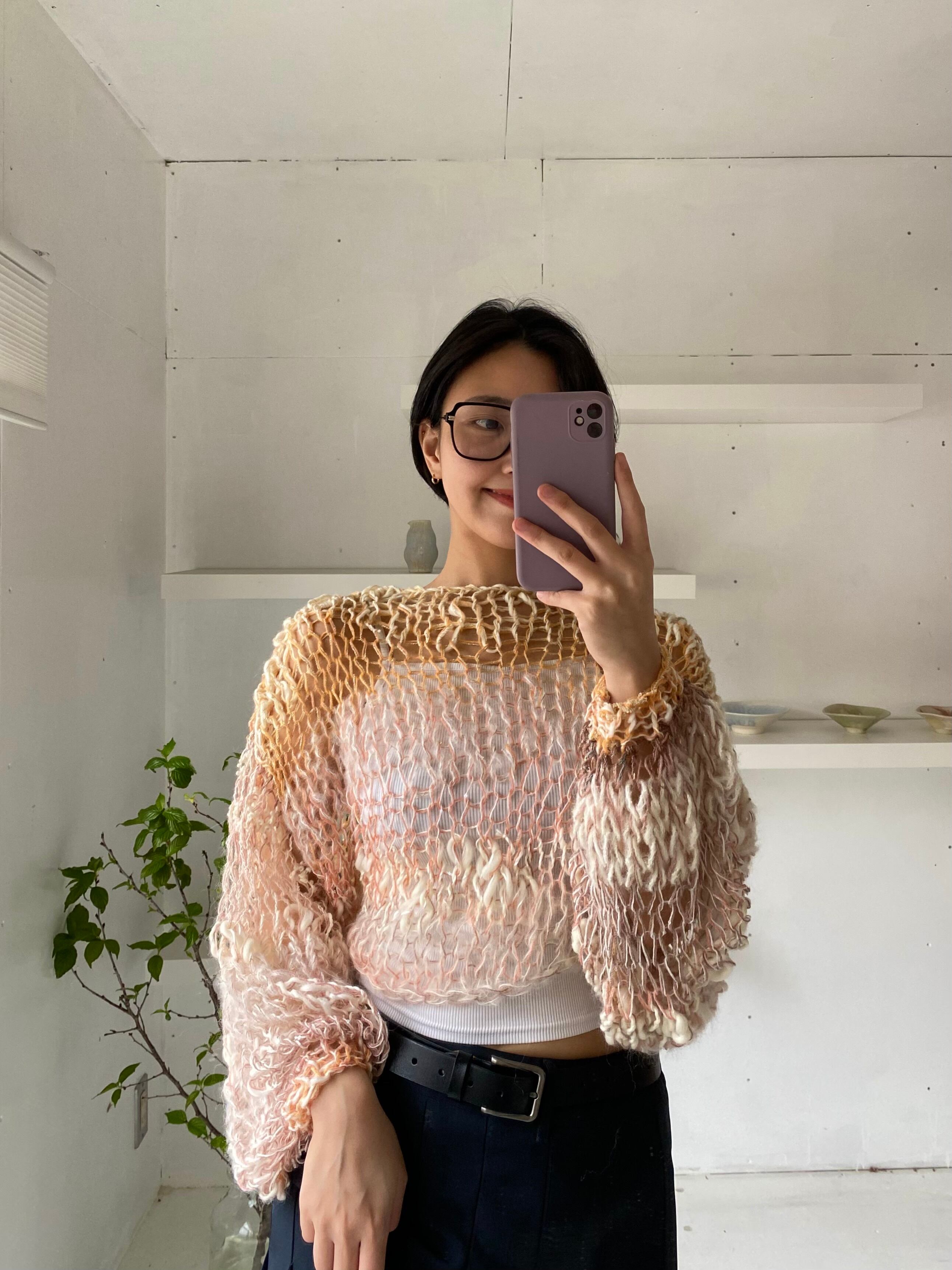 •商品は全てハンドメイドで、ざっくりとした手編みの質感を楽しむ商品です。工場製品のように端正な作りではありません。ご理解の上ご購入ください。