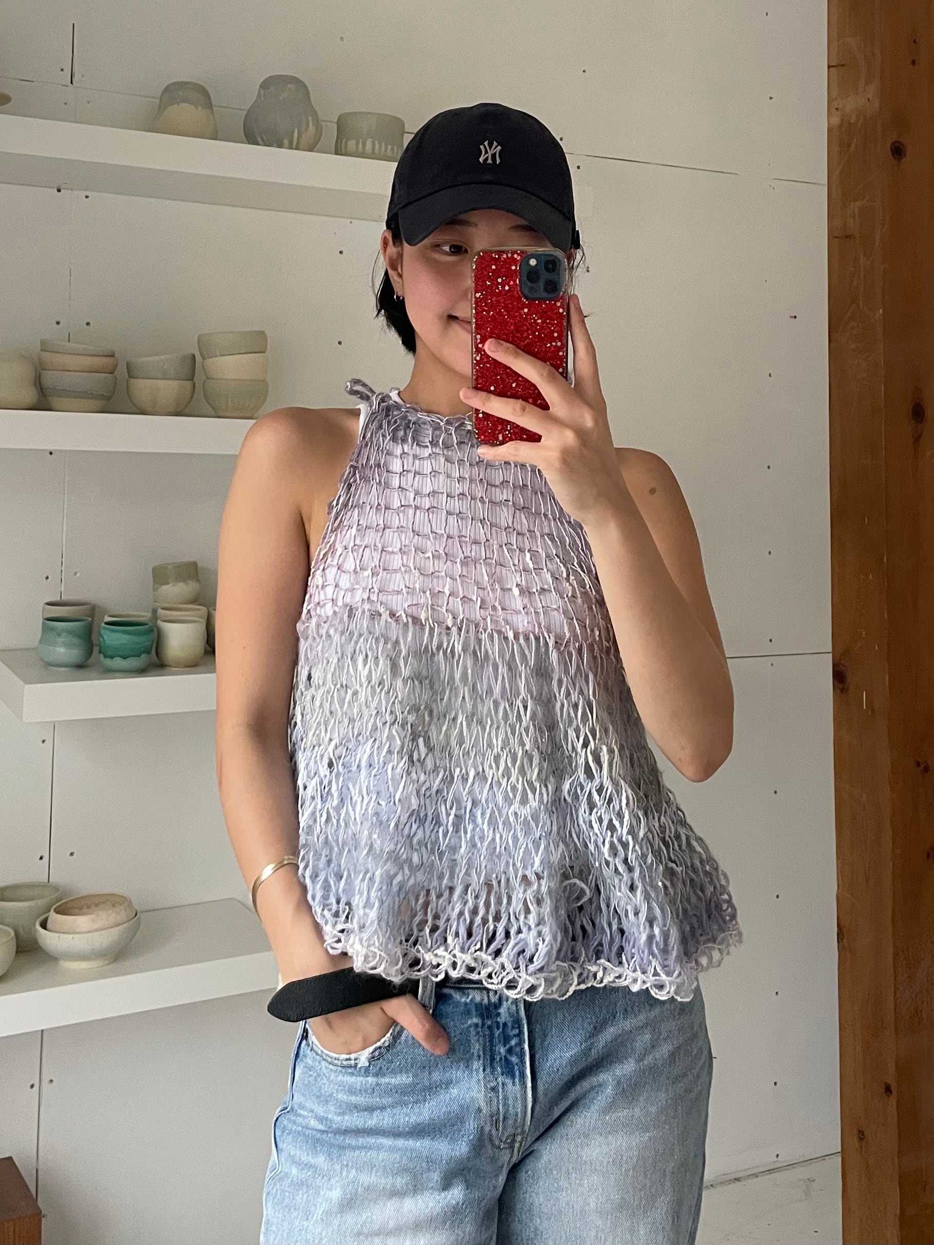特にミックス毛糸でシースルーに仕上げている商品では、仕上げの際に糸端の処理をしていても着用中に糸端が表にでることがあります。質感の一部としてお楽しみ頂ける方のみご購入ください。
