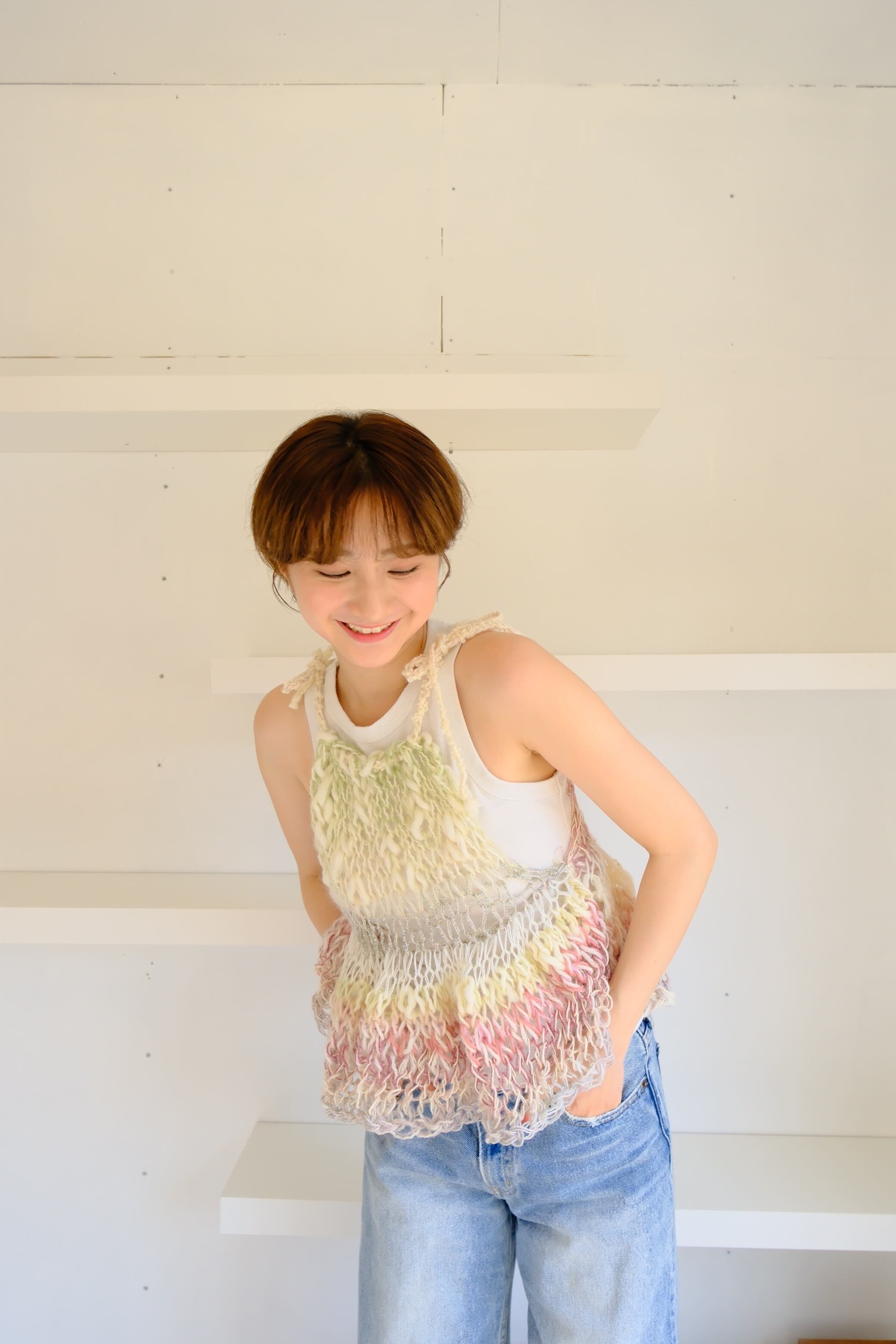 ・商品ごとに使用している毛糸が異なり、毛糸によっては着用中に肩紐や襟周りが伸びることがあります。素材の特徴によるもので、商品不良としてのの対応はしかねます。