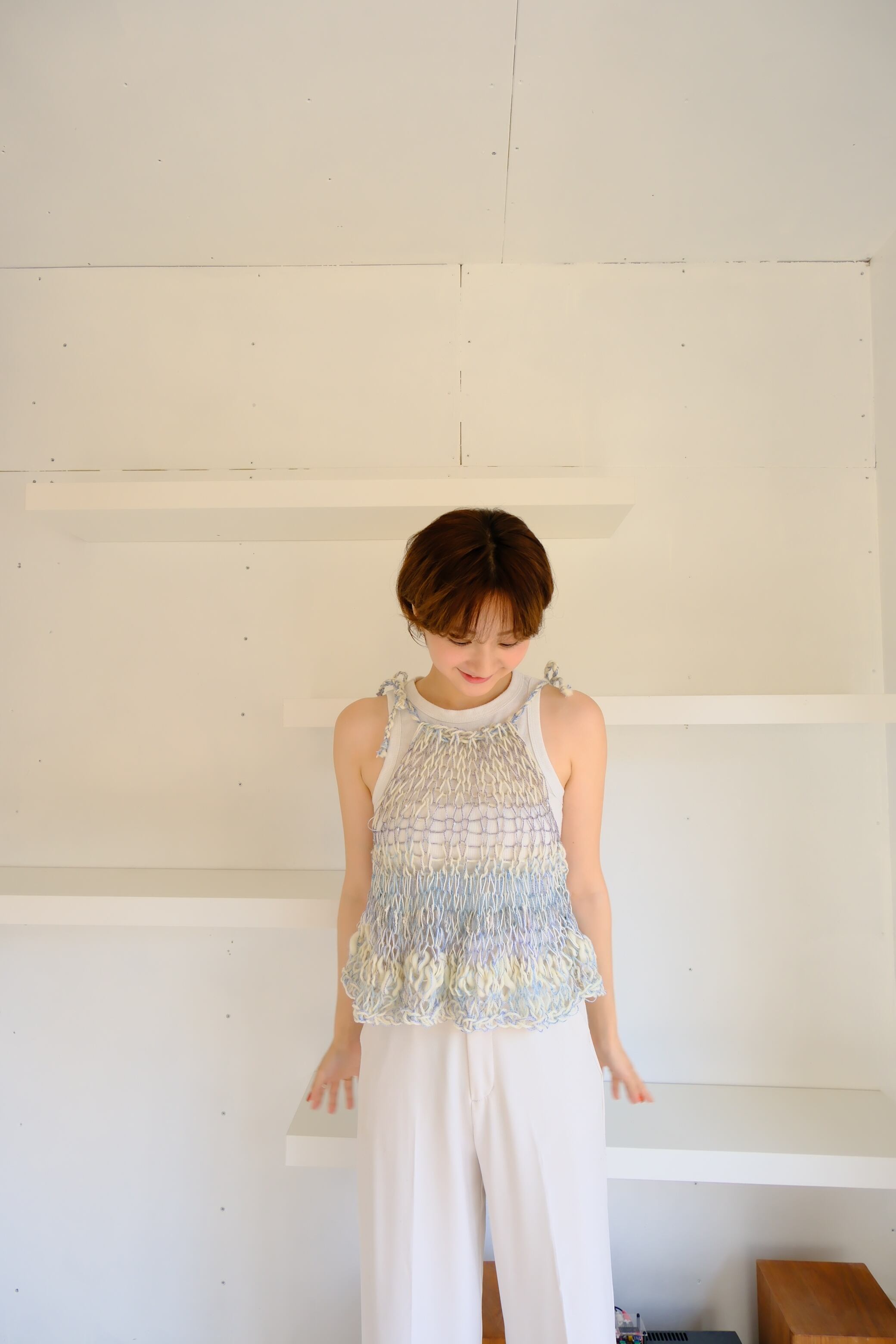 特にミックス毛糸でシースルーに仕上げている商品では、仕上げの際に糸端の処理をしていても着用中に糸端が表にでることがあります。質感の一部としてお楽しみ頂ける方のみご購入ください。