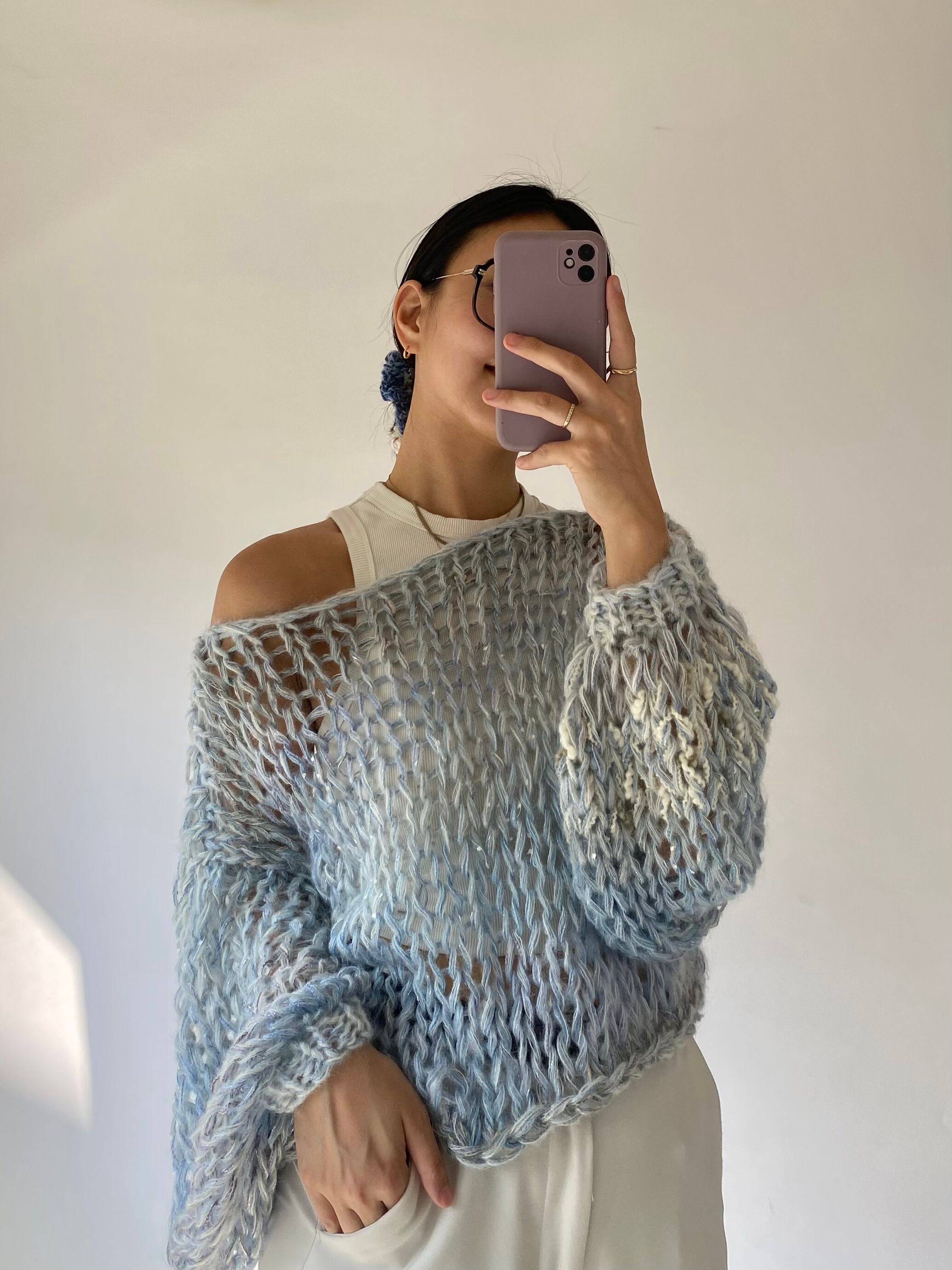 -An airy, cosy layer of comfort that hugs your skin — every single piece is uniquely handknitted, using plenty of high quality second hand wool and mohair yarns.