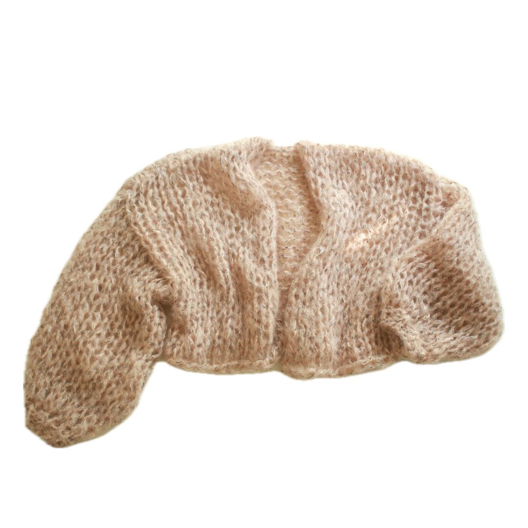 くすみピンクにブラックのネップがミックスされた、大人も着やすいピンクモヘアのカーディガン