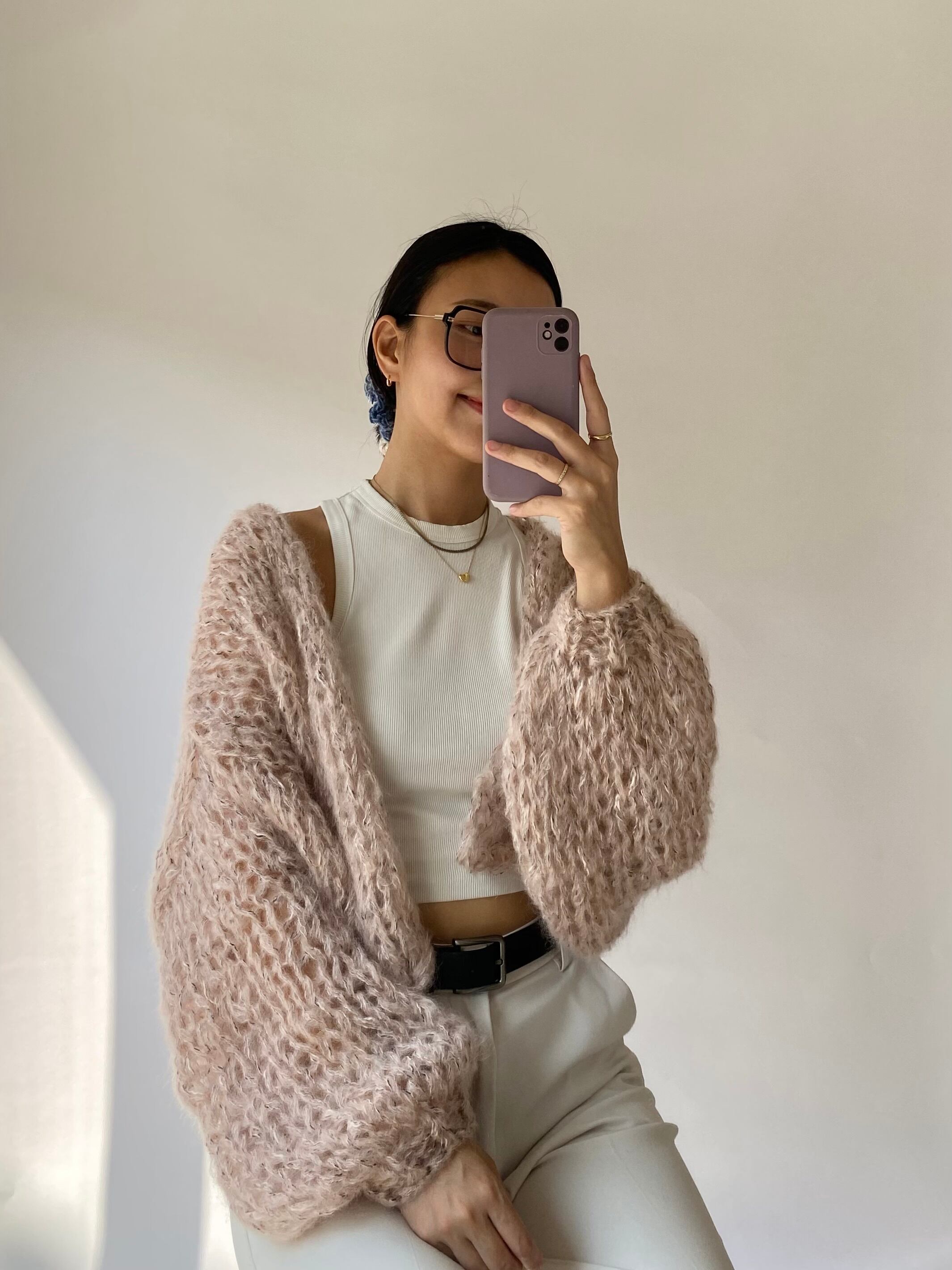 -An airy, cosy layer of comfort that hugs your skin — every single piece is uniquely handknitted, using plenty of high quality second hand wool and mohair yarns.