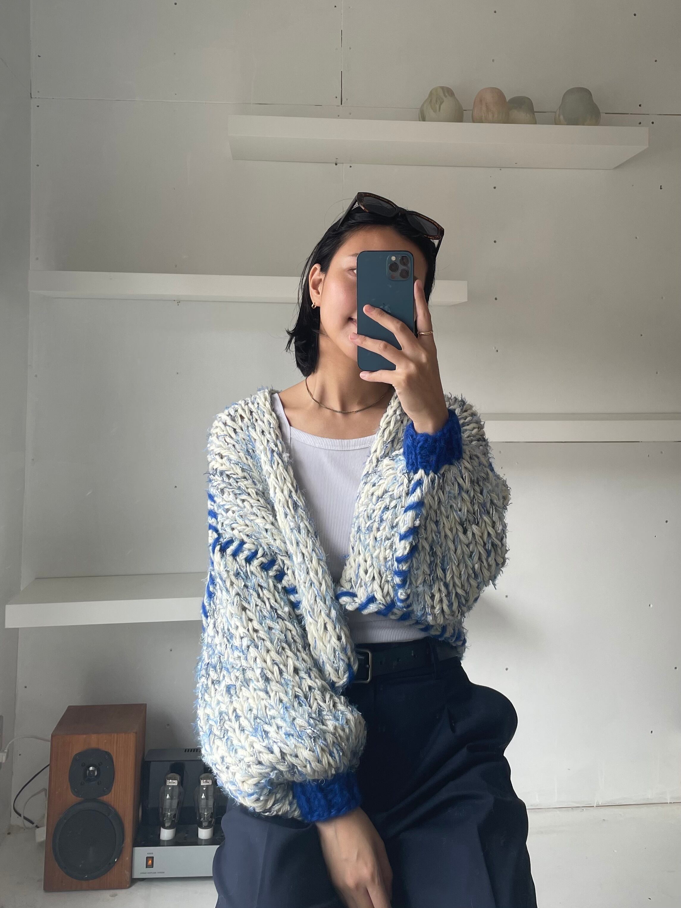 – Since we repurpose second hand yarn, we are not able to provide exact information about the materials. Please note that because of this, some dry cleaning stores may reject taking in knitwear you have purchased from amuamu.