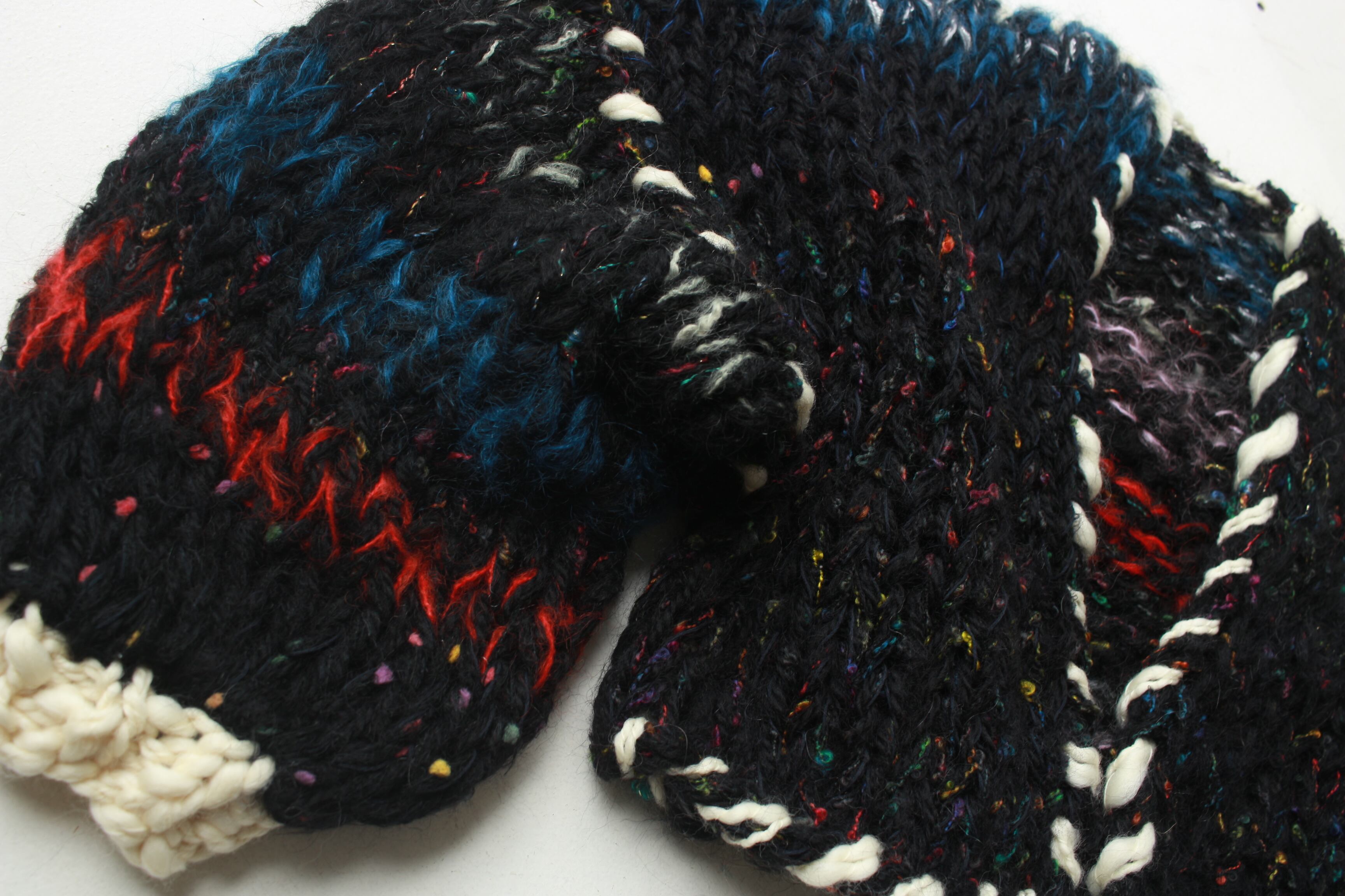 – Since we repurpose second hand yarn, we are not able to provide exact information about the materials. Please note that because of this, some dry cleaning stores may reject taking in knitwear you have purchased from amuamu.