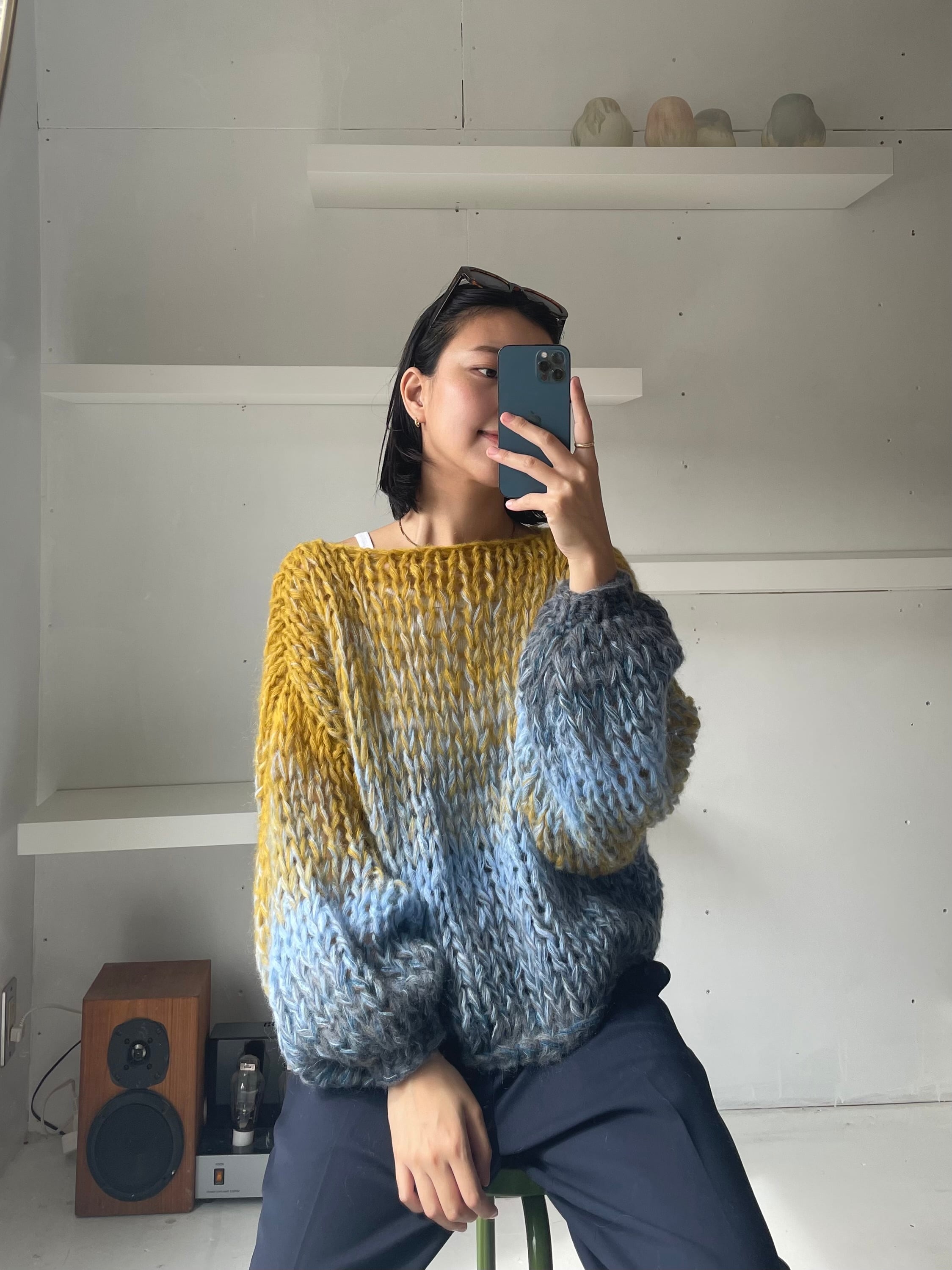 一期一会のセカンドハンド毛糸を使用した、全て一点物の手編みセーター。