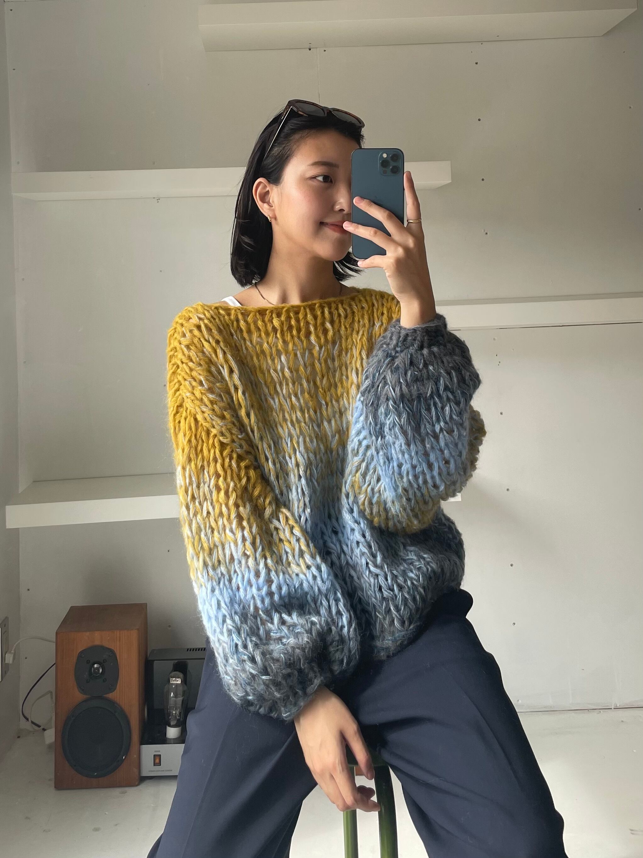 シルクタッチのモヘアを使用した、グラデーションセーター