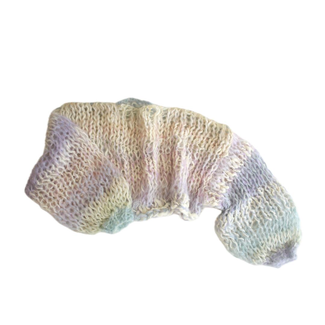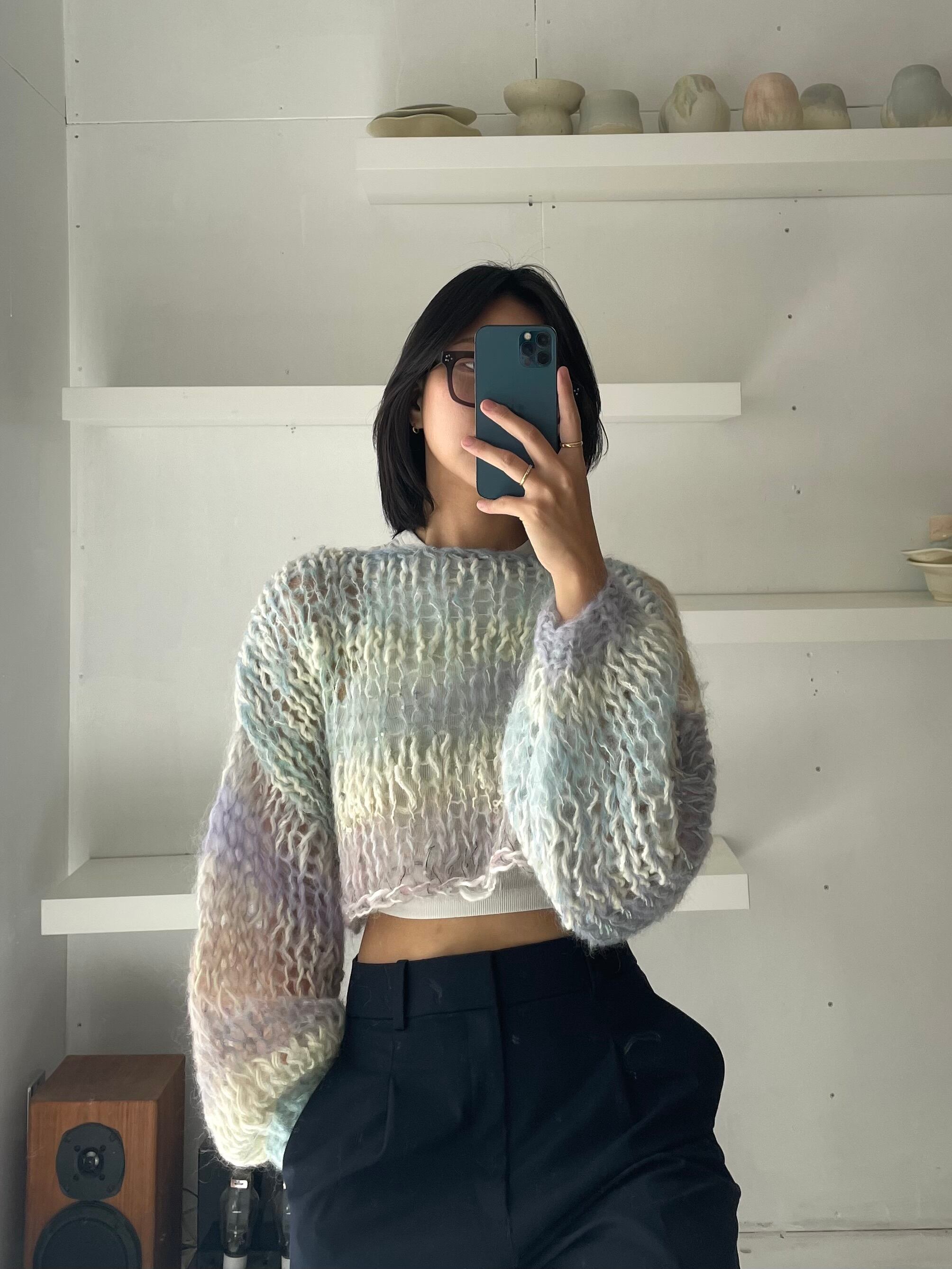 An airy, cosy layer of comfort that hugs your skin — every single piece is uniquely handknitted, using plenty of high quality second hand wool and mohair yarns.