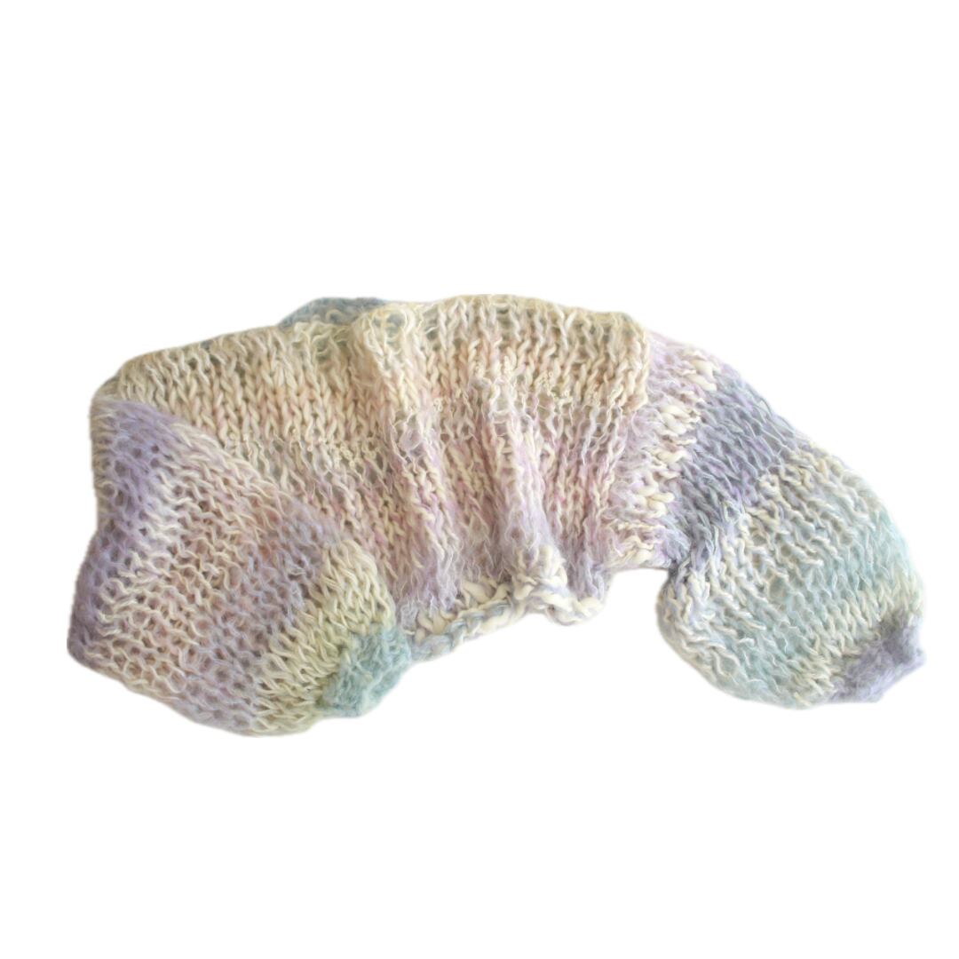 •セカンドハンドの毛糸を混ぜて使用しているため正確な品質表示が出せませんが、主に50~80%モヘア/ウール、その他アクリル、ポリエステルなどです。
