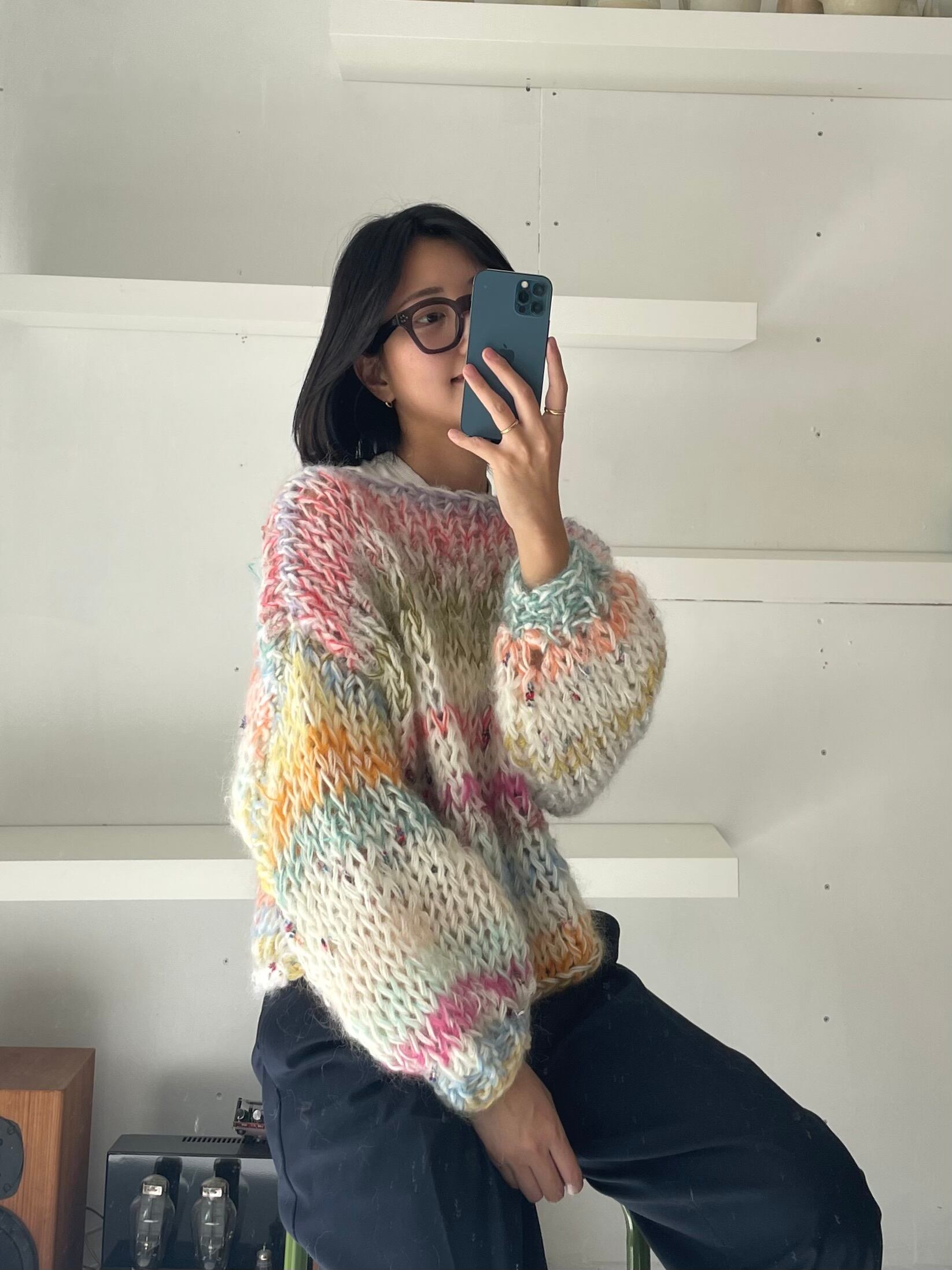 色々な毛糸をミックスした柔らかなセーター