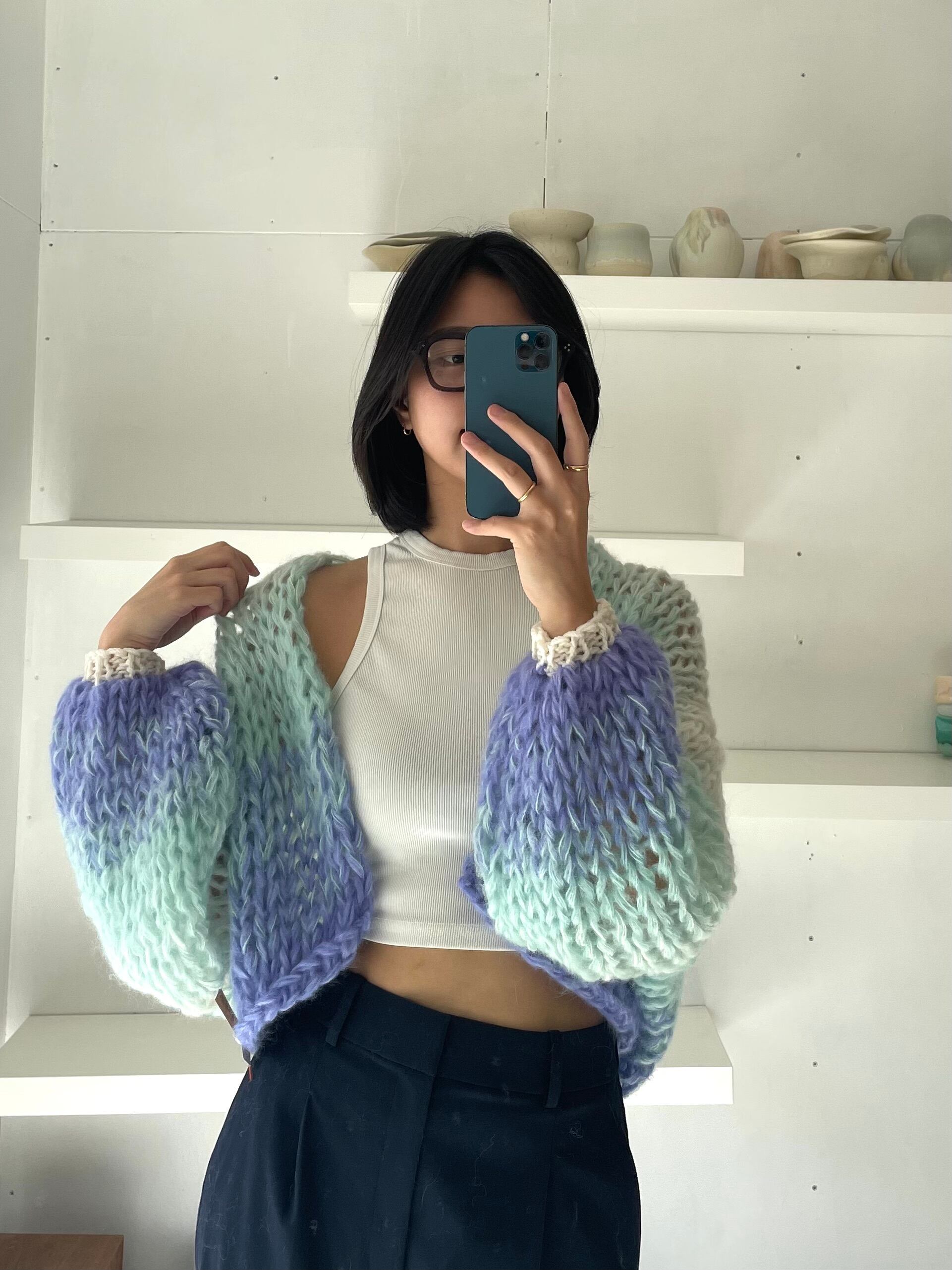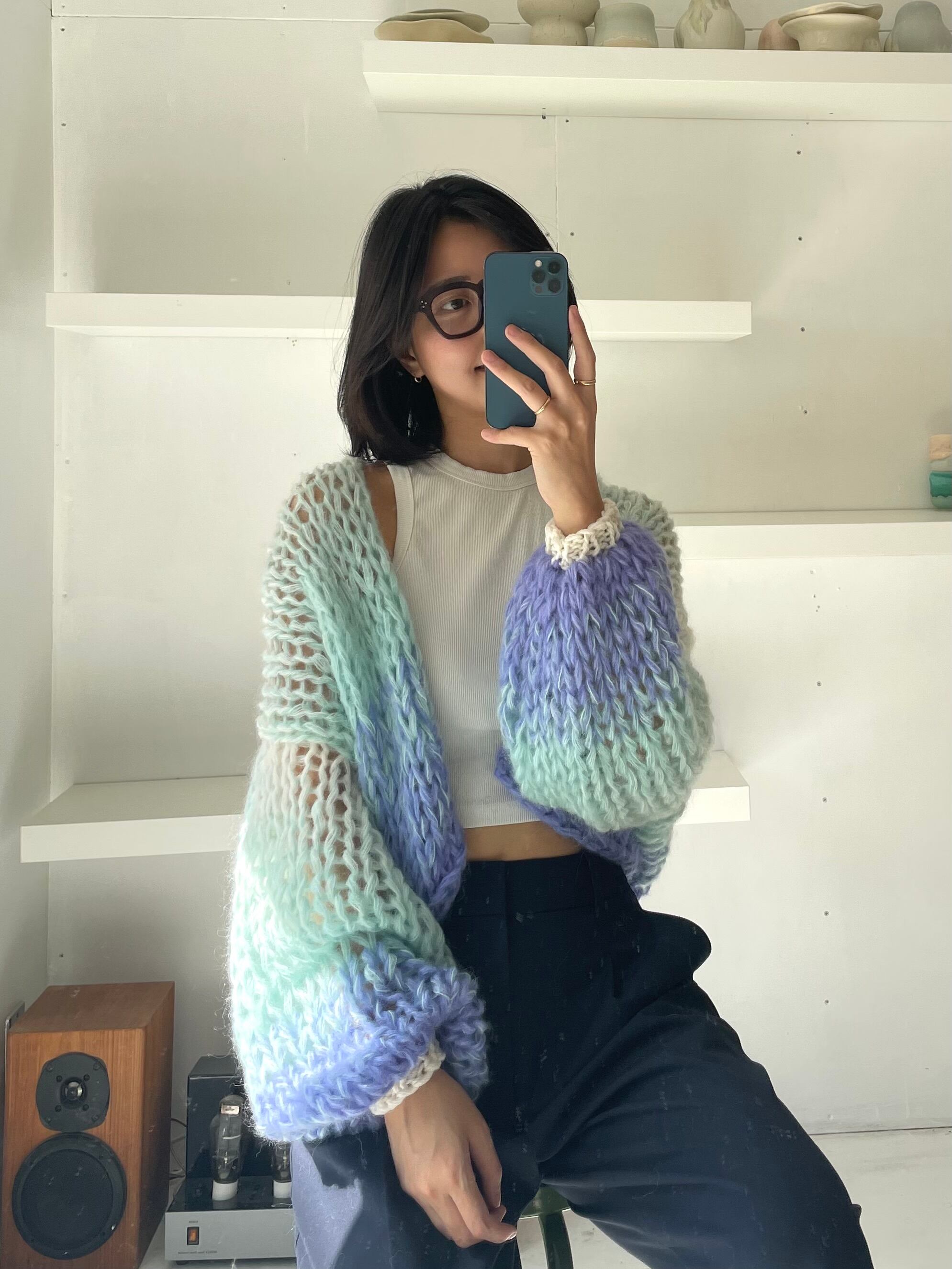 シルクタッチの柔らかなモヘアで編んだ、グラデーションカーディガン