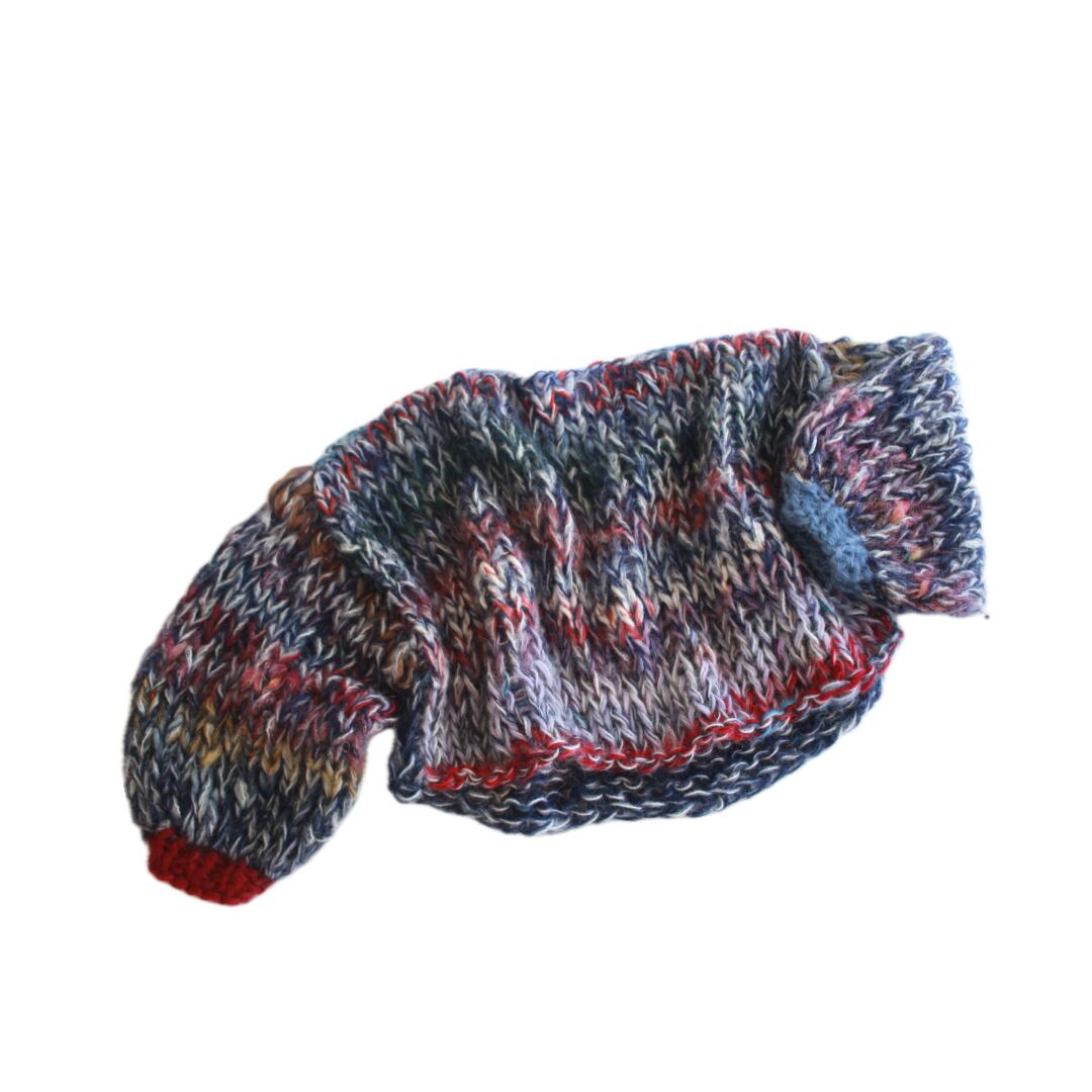– Since we repurpose second hand yarn, we are not able to provide exact information about the materials. Please note that because of this, some dry cleaning stores may reject taking in knitwear you have purchased from amuamu.