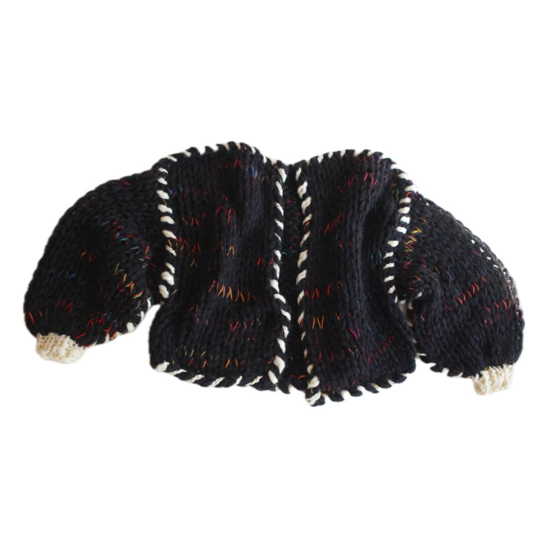 柔らかな黒モヘアにレインボーカラーのネップをミックスしたステッチカーディガン
