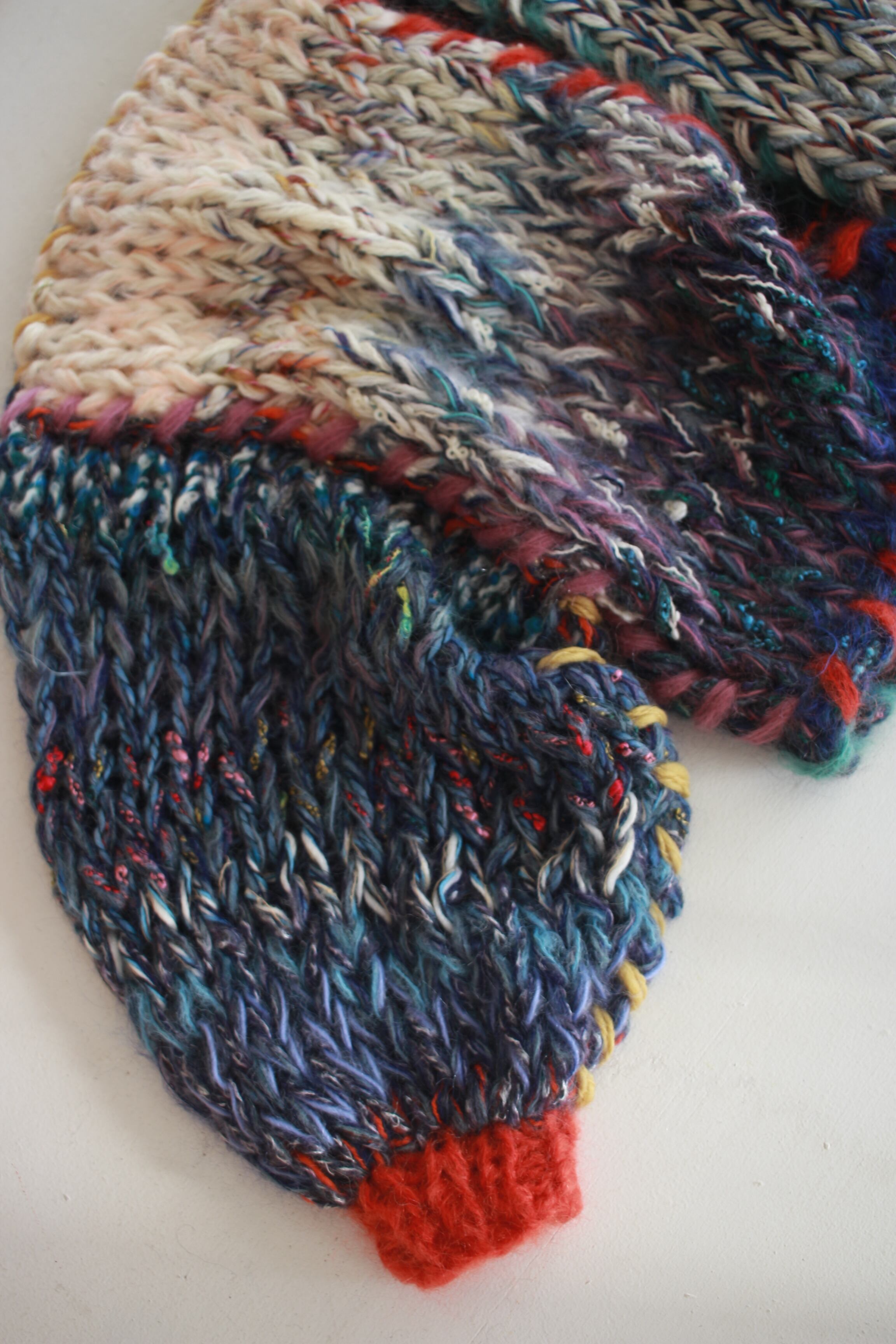 いろいろな毛糸をミックスしたステッチカーディガン