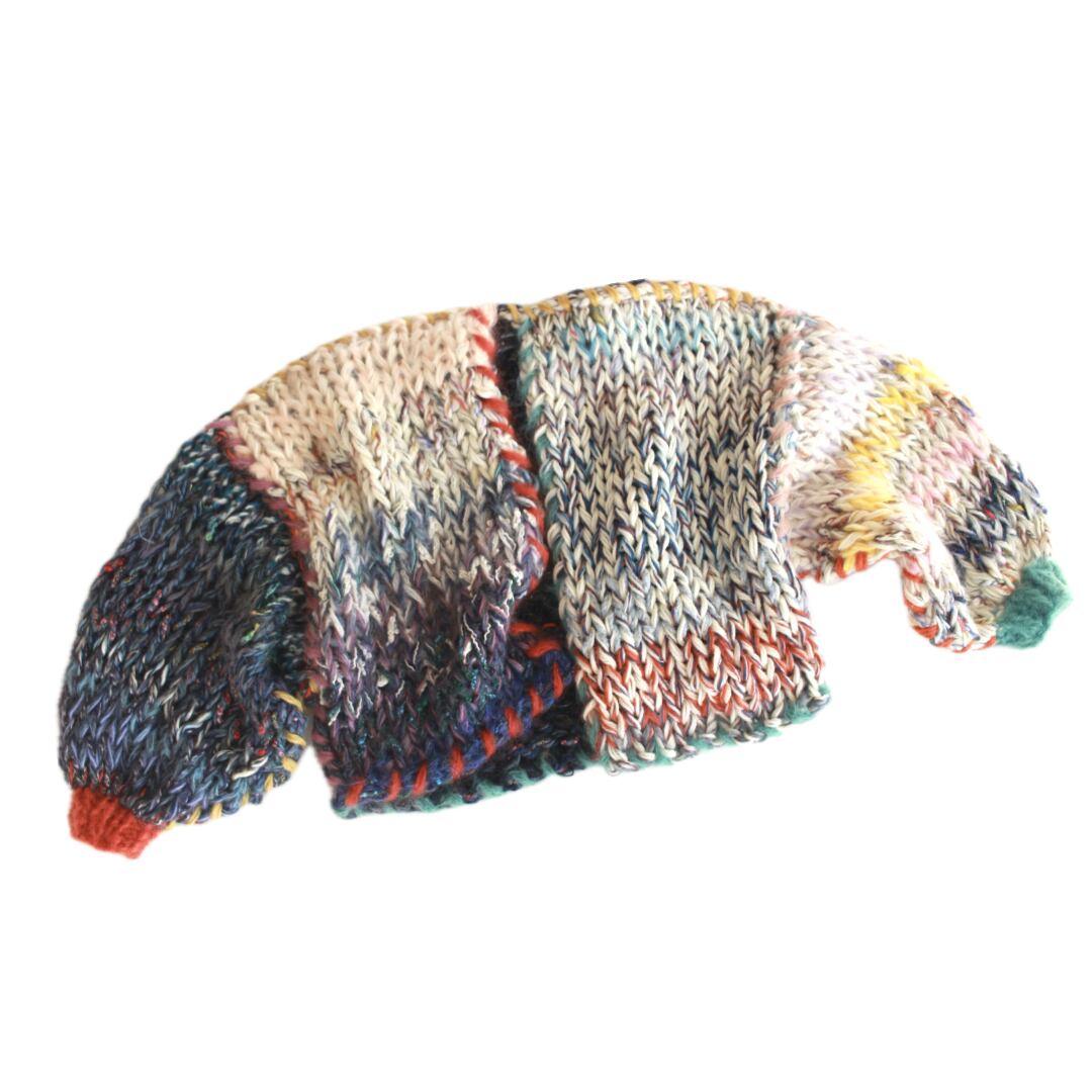 – Since we repurpose second hand yarn, we are not able to provide exact information about the materials. Please note that because of this, some dry cleaning stores may reject taking in knitwear you have purchased from amuamu.