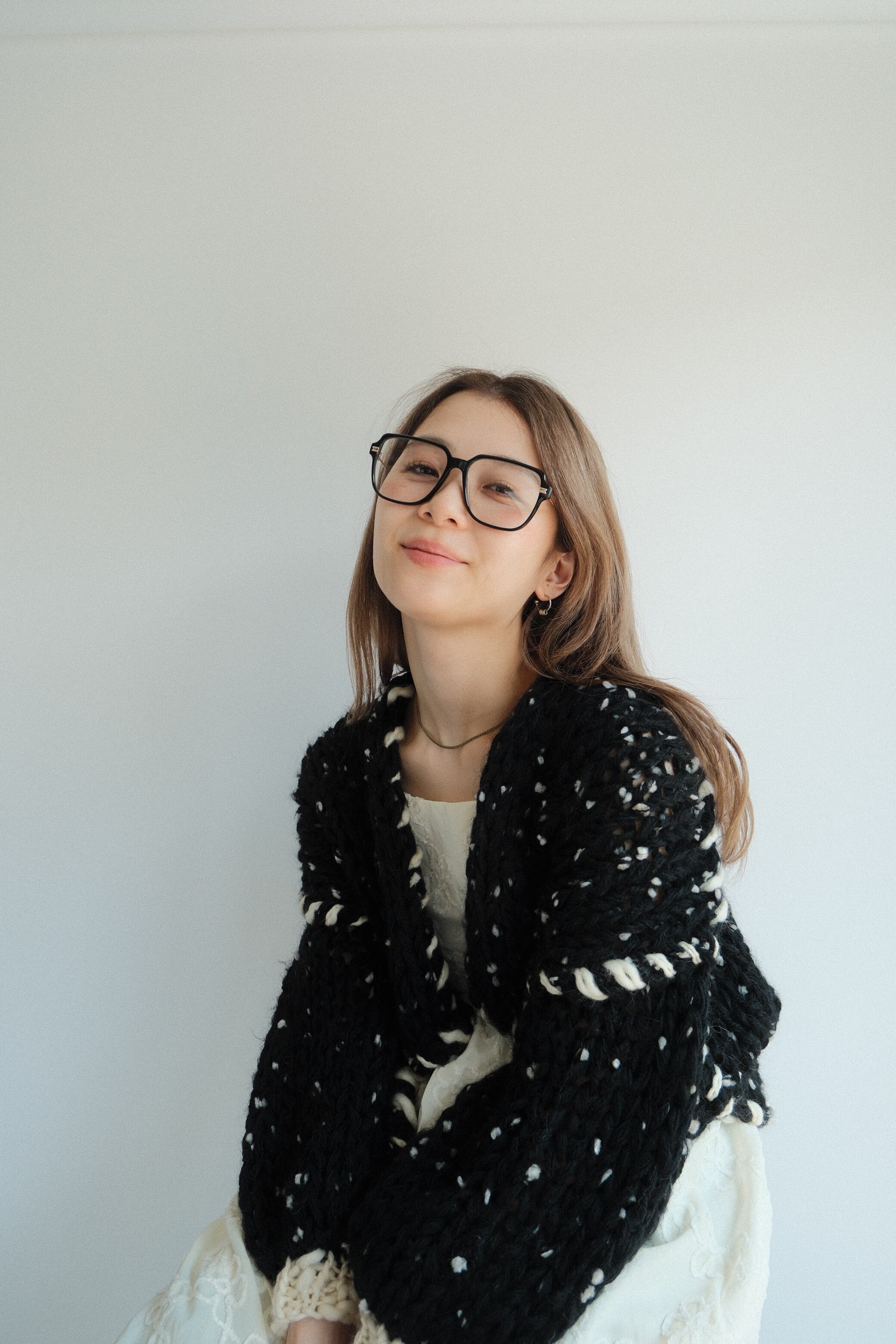 雪のようなネップをあしらった柔らかなカーディガン