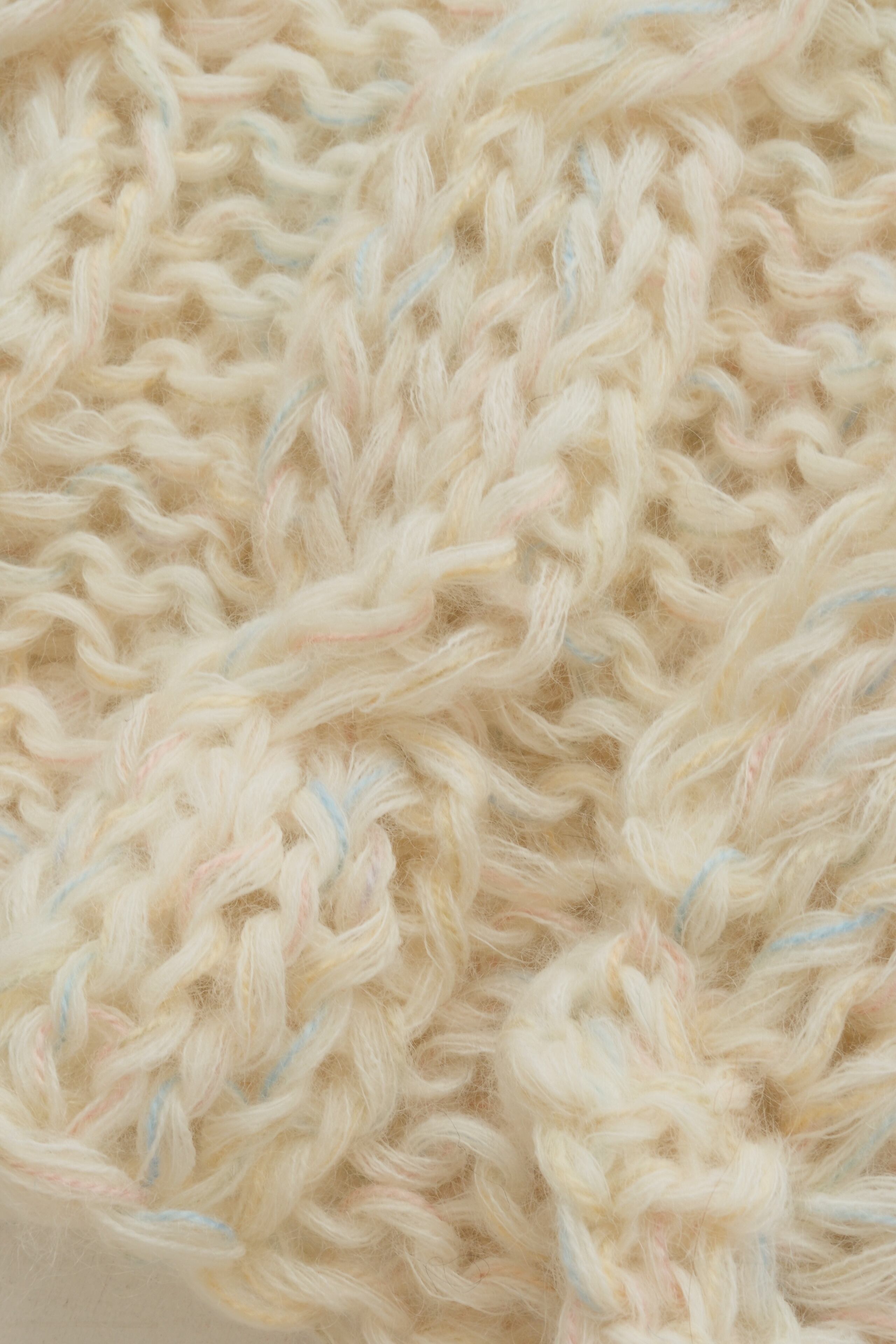 •セカンドハンドの毛糸を混ぜて使用しているため正確な品質表示が出せませんが、主に50~80%モヘア/ウール、その他アクリル、ポリエステルなどです。