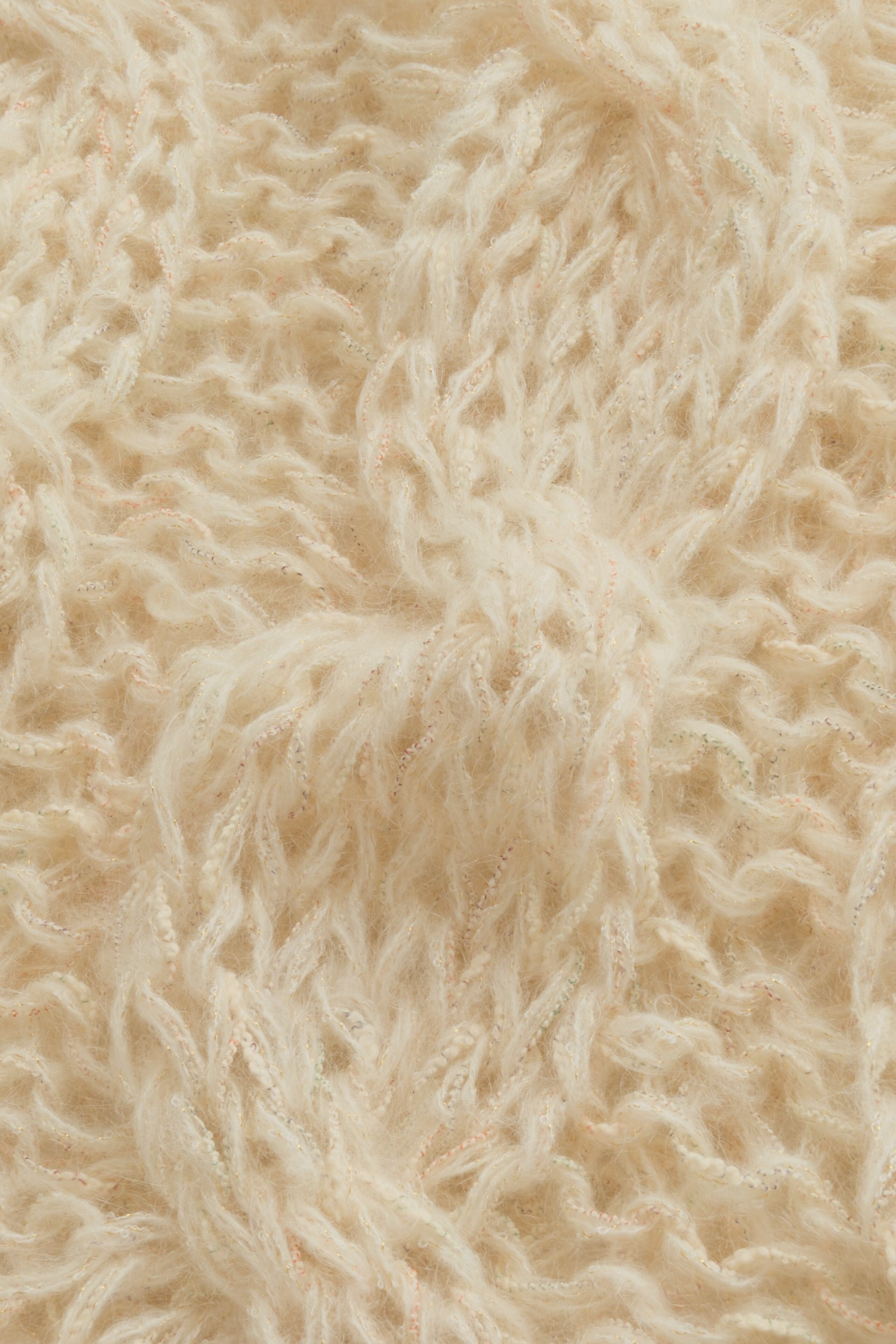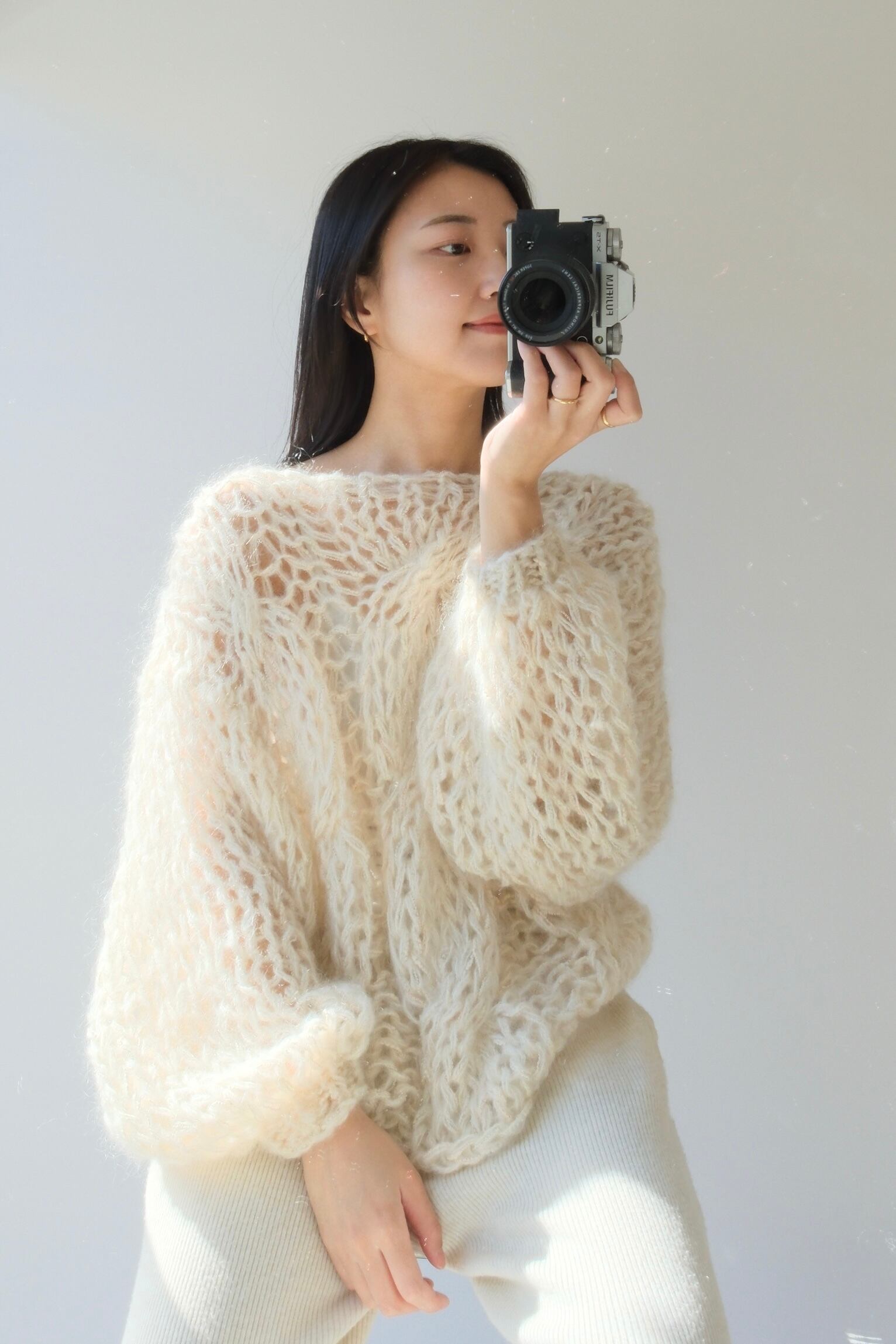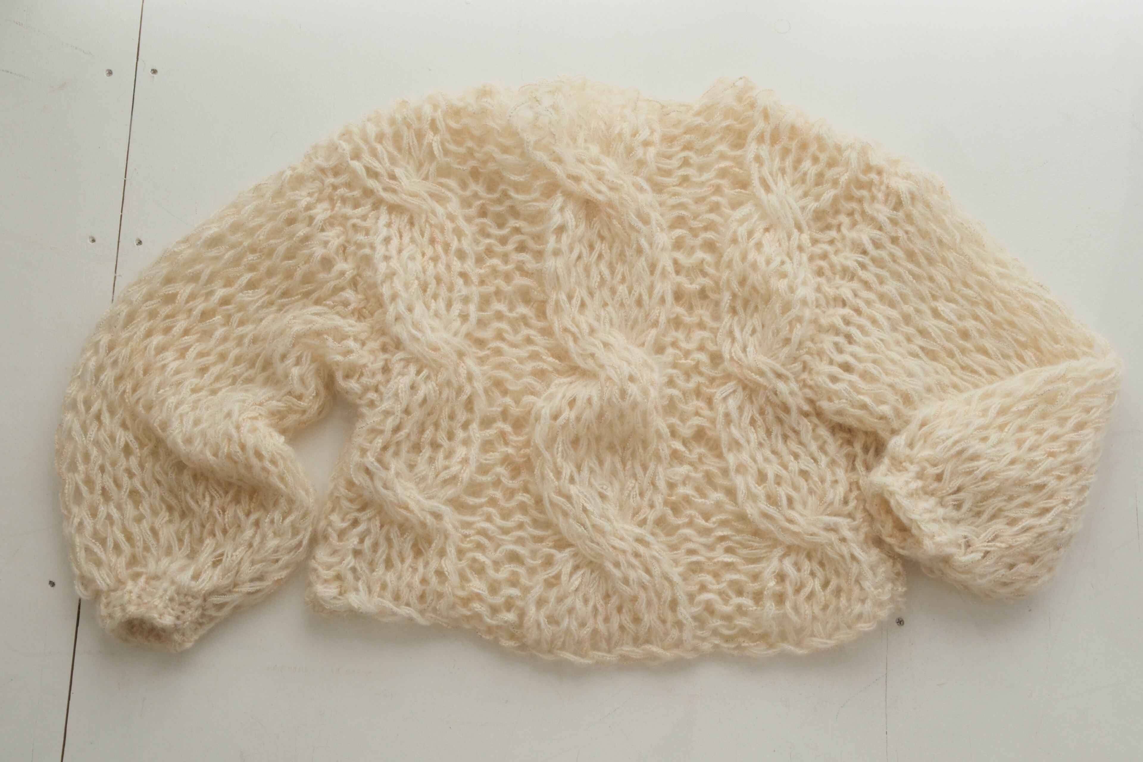 柔らかく上質なモヘアにニュアンスカラーの糸をミックスしたケーブルセーター